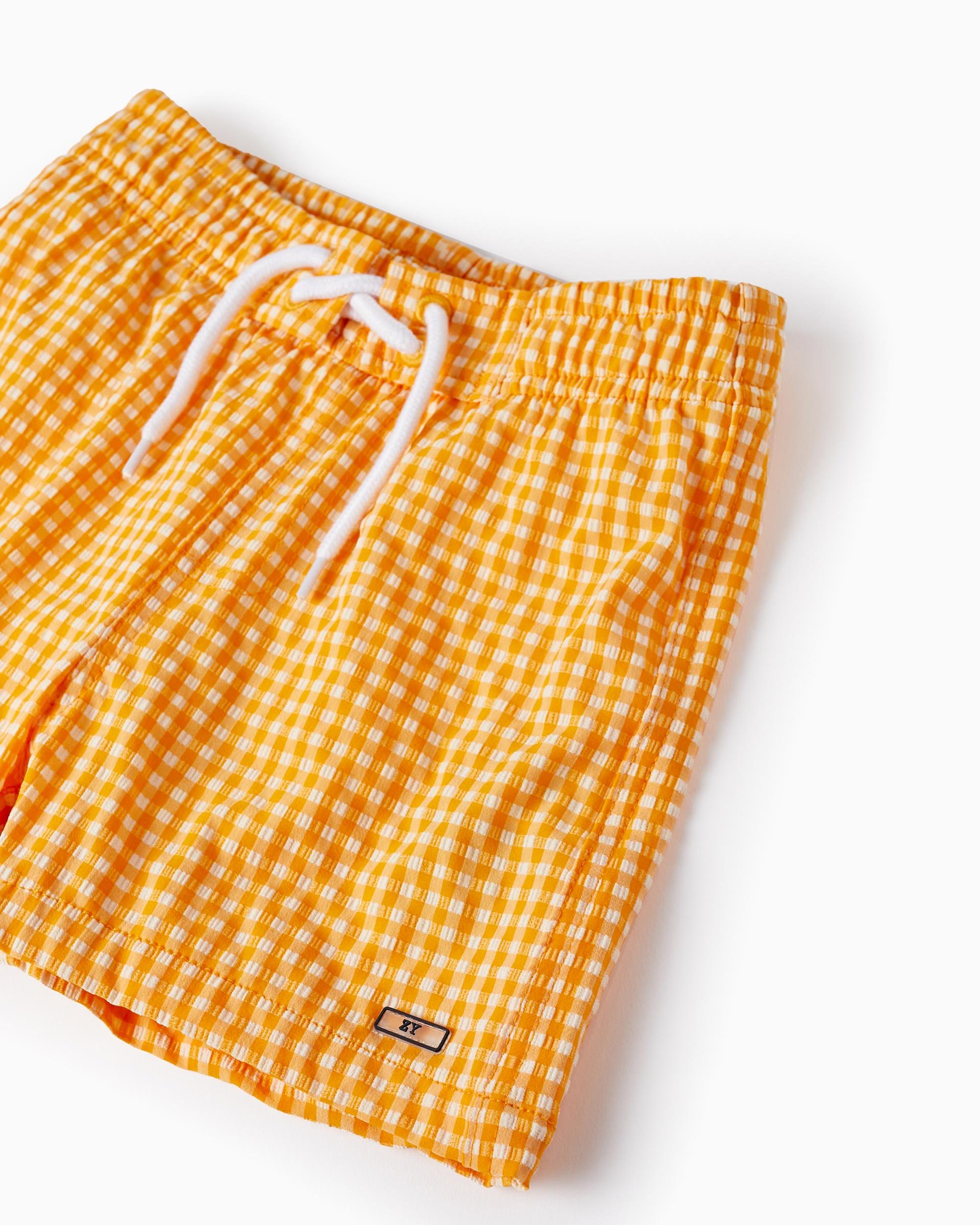 Swim Shorts with Vichy Pattern for Boys, Yellow