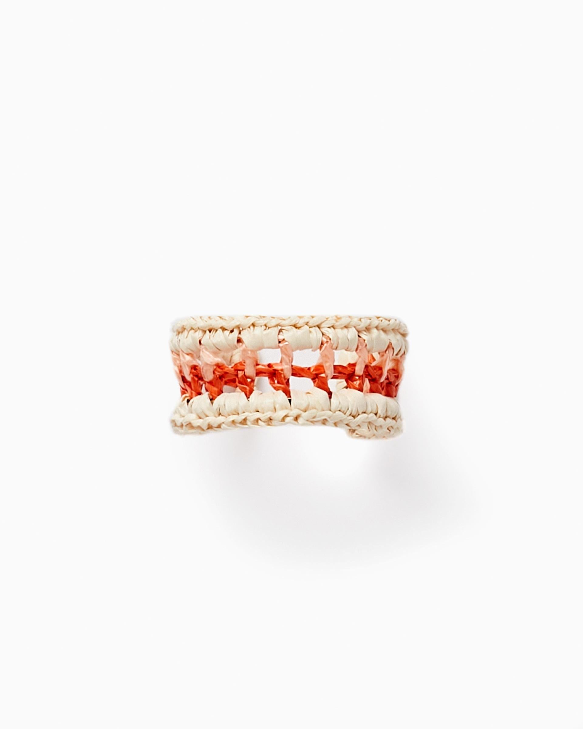 Raffia bracelet for girls in light beige and orange. Rigid structure. A practical and comfortable accessory to combine with a multitude of looks.