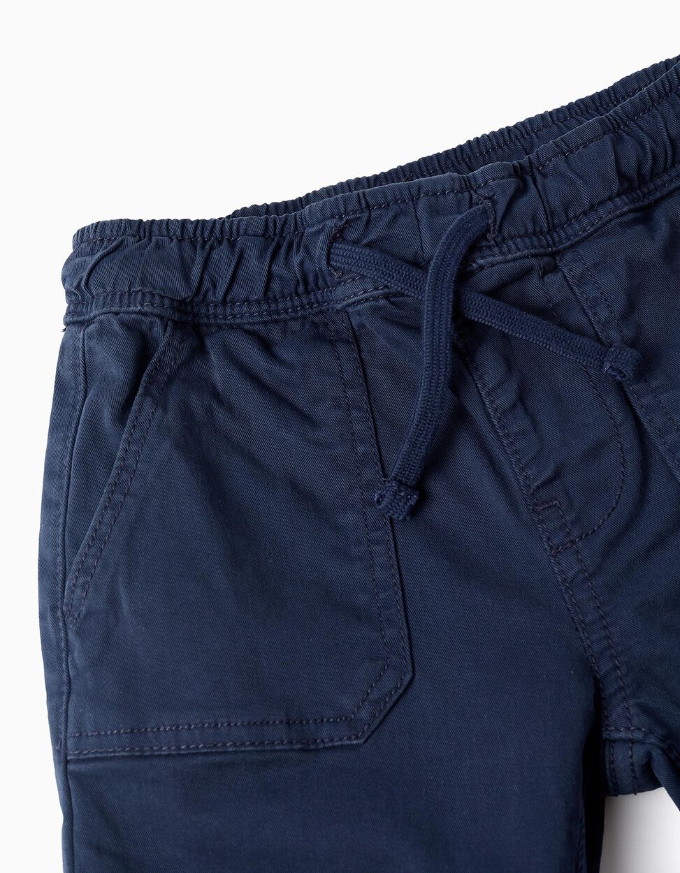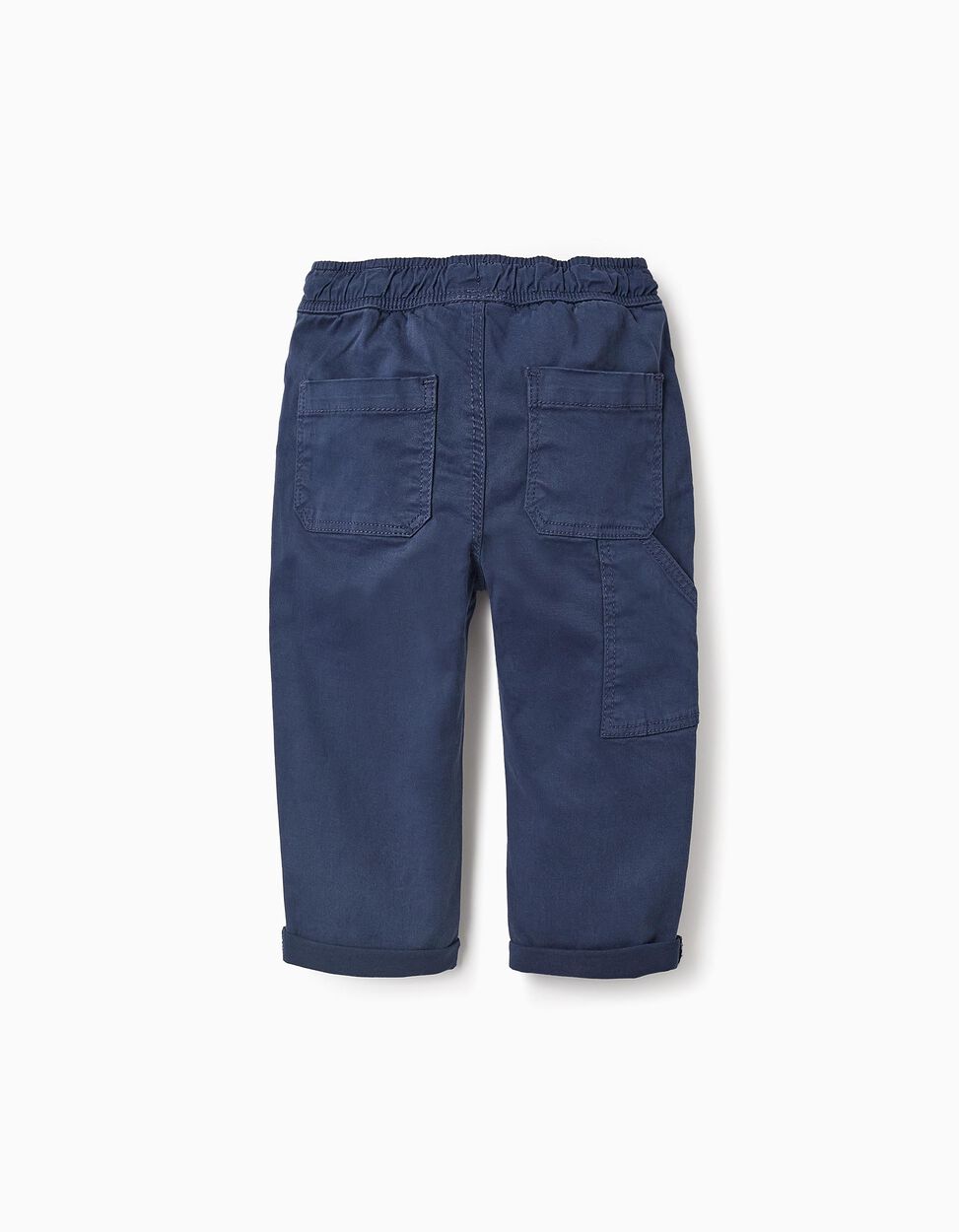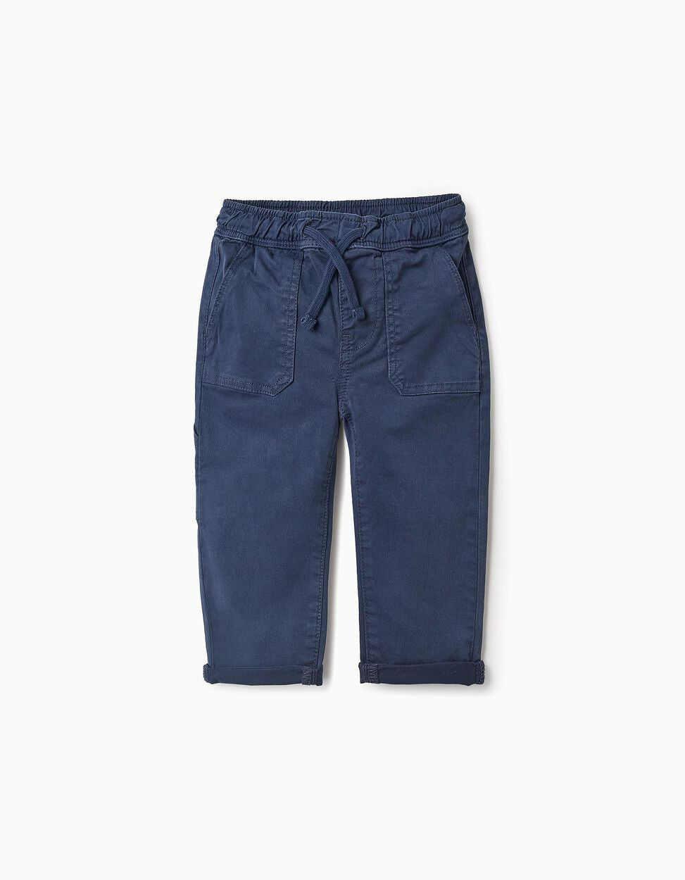 Twill Drawstring Trousers for Baby Boys, Dark Blue