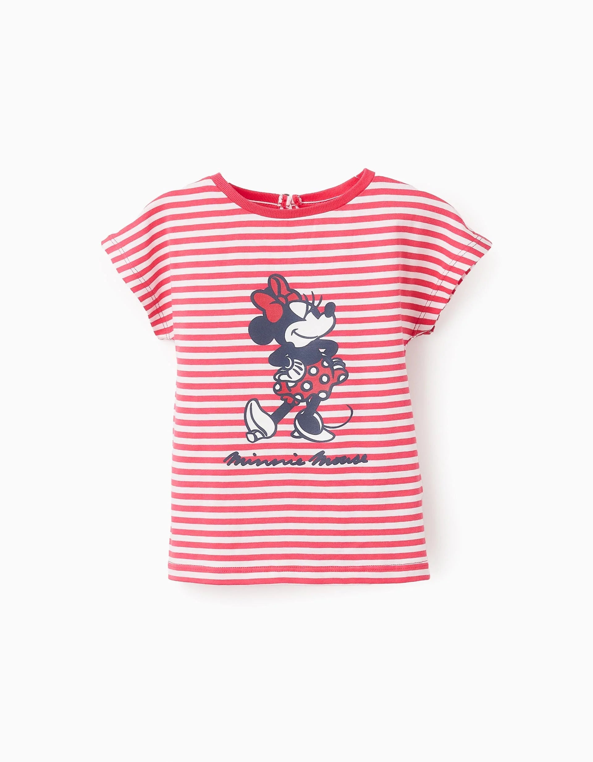 Striped Cotton T-shirt for Baby Girls 'Minnie', White/Red