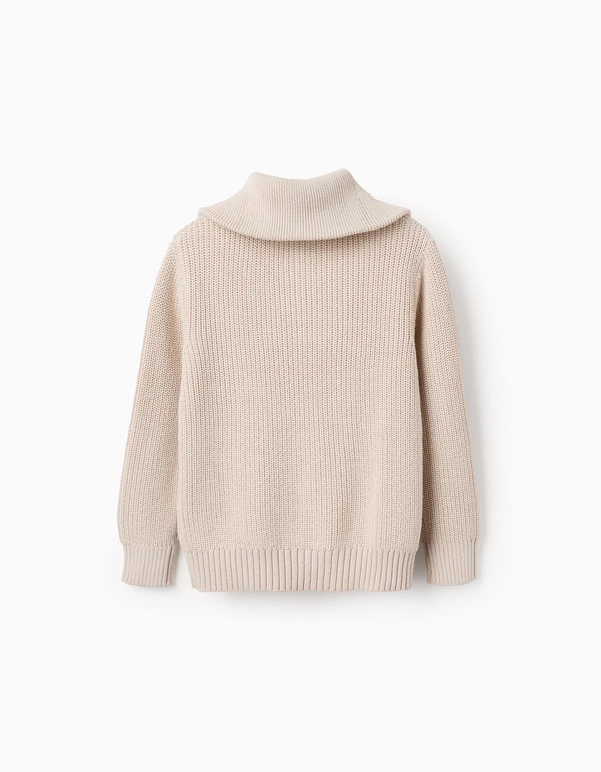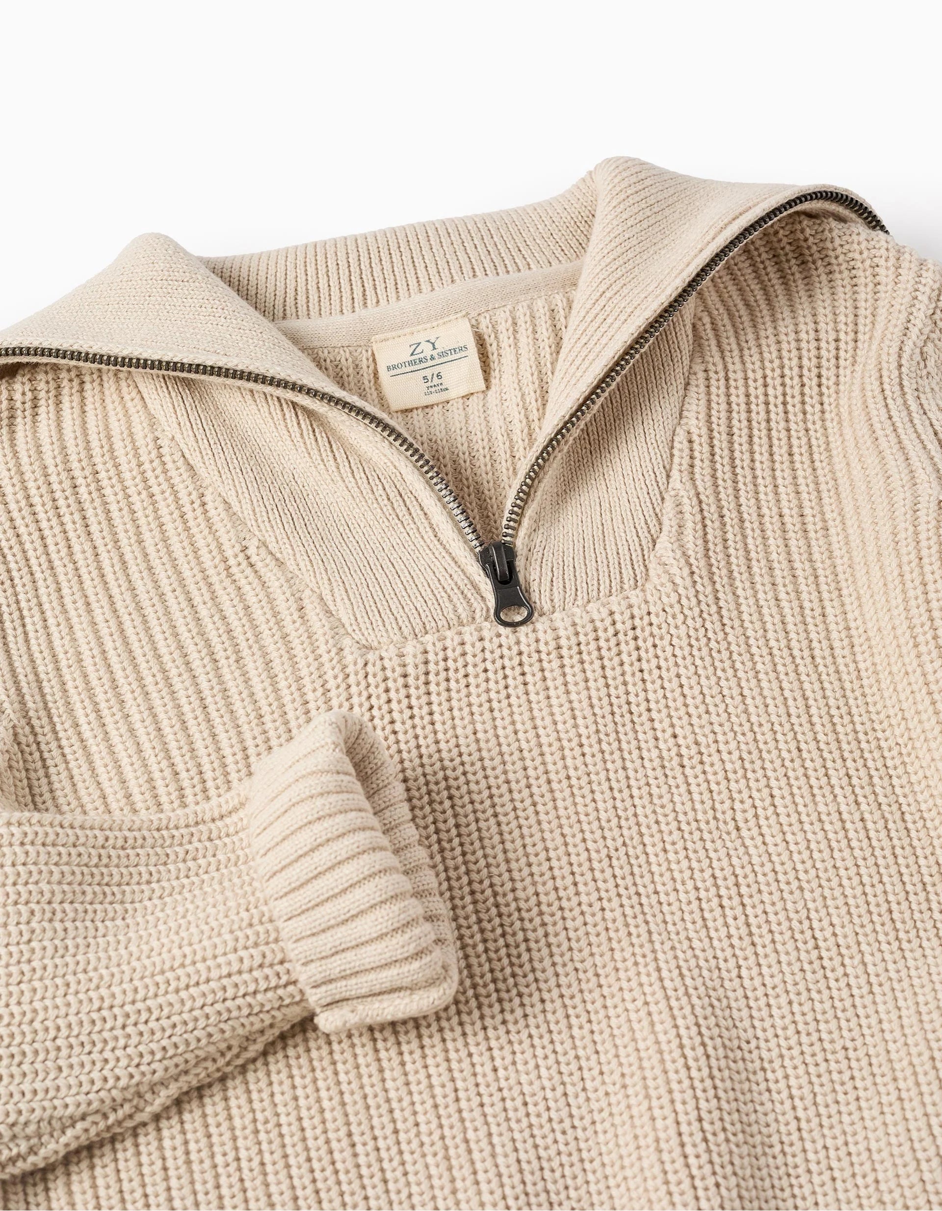 Knitted Jumper with Zip Collar for Boys 'B&S', Beige