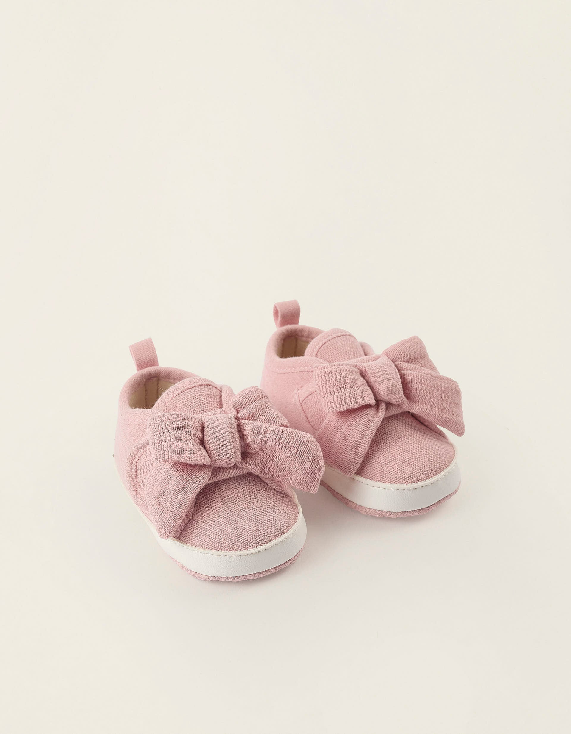 Fabric Trainers with Bow for Newborn Girls, Pink