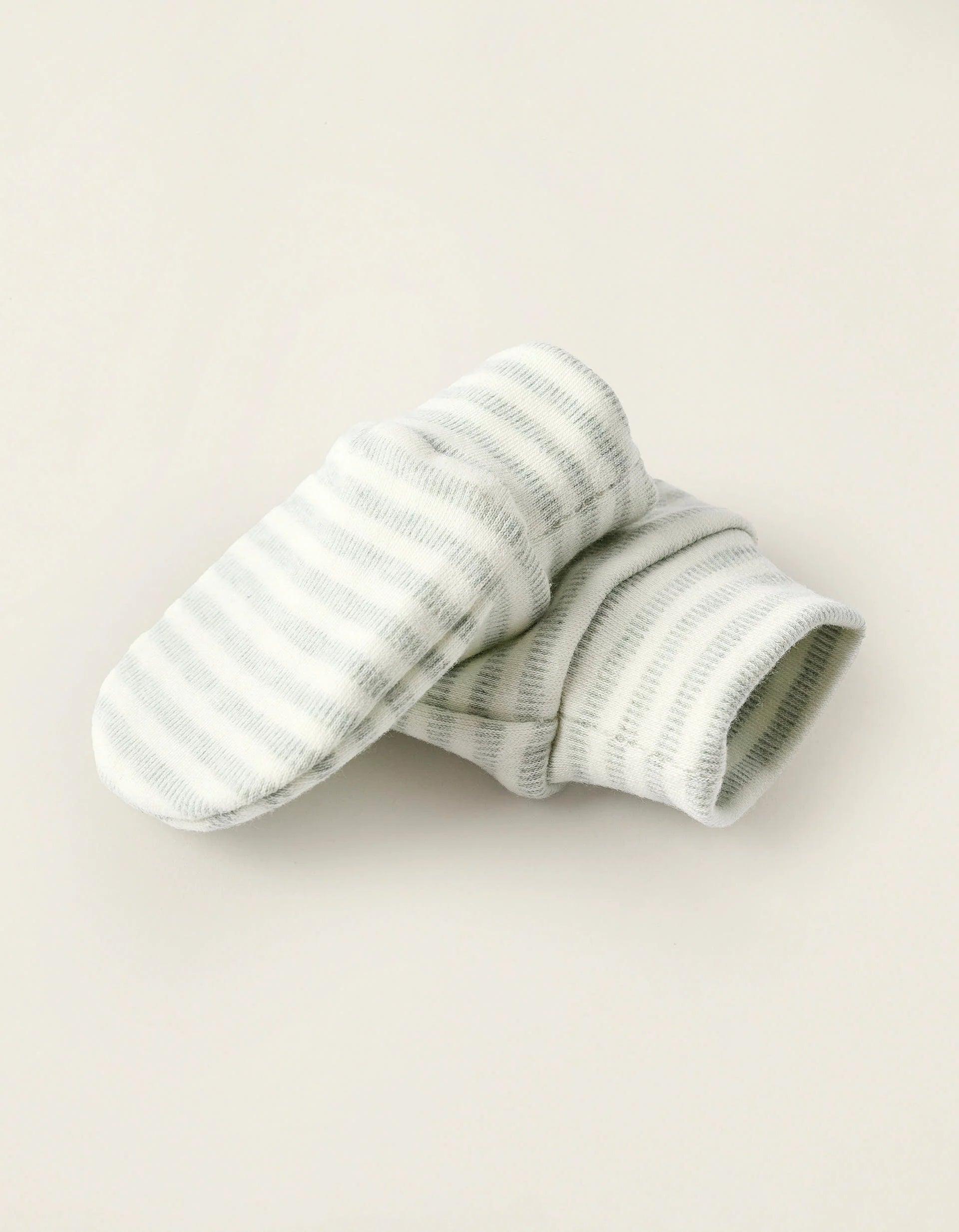 Pack Beanie + Cotton Mittens for Newborns, Green/White