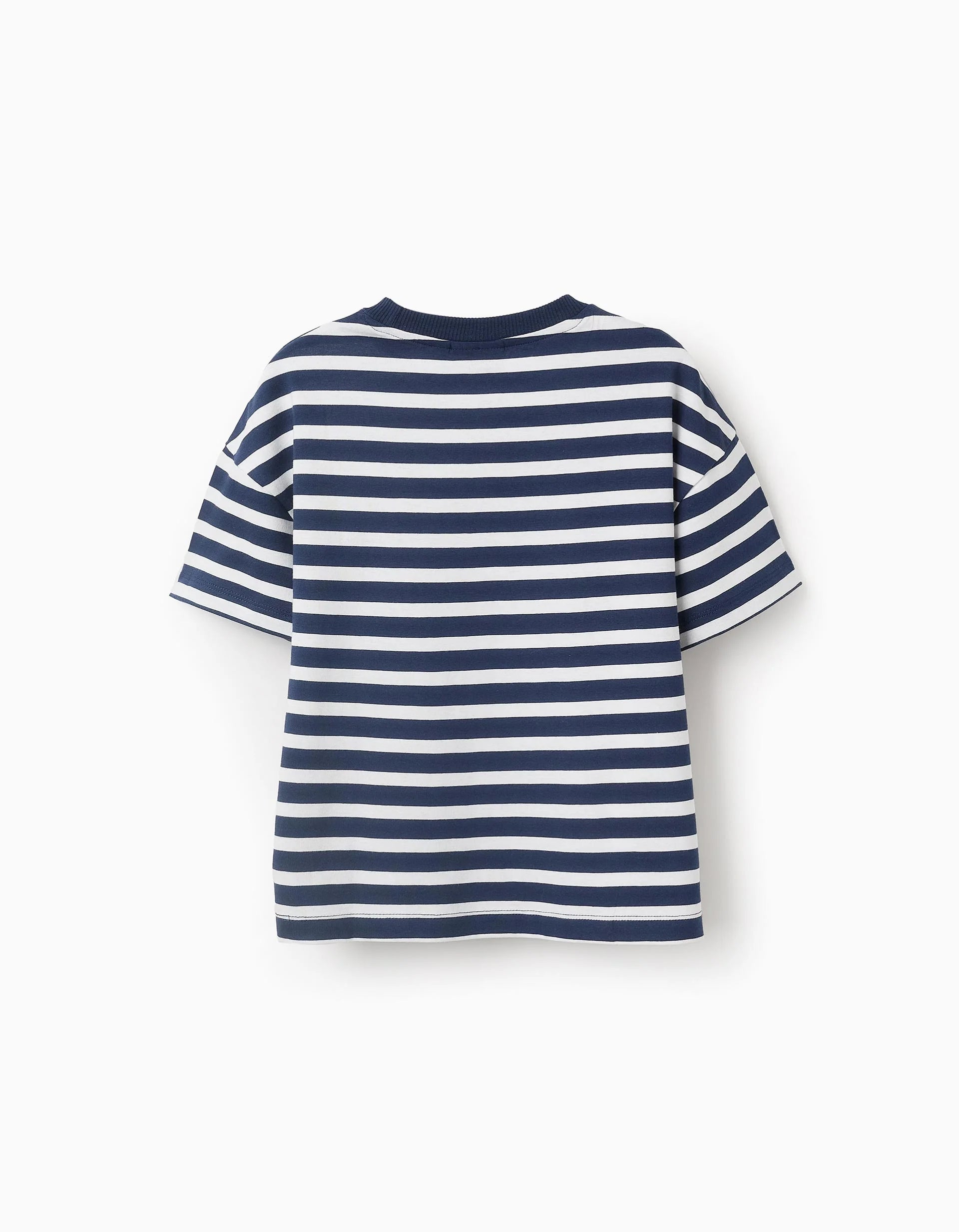 Striped T-shirt for Boys 'Pikachu', Dark Blue/White