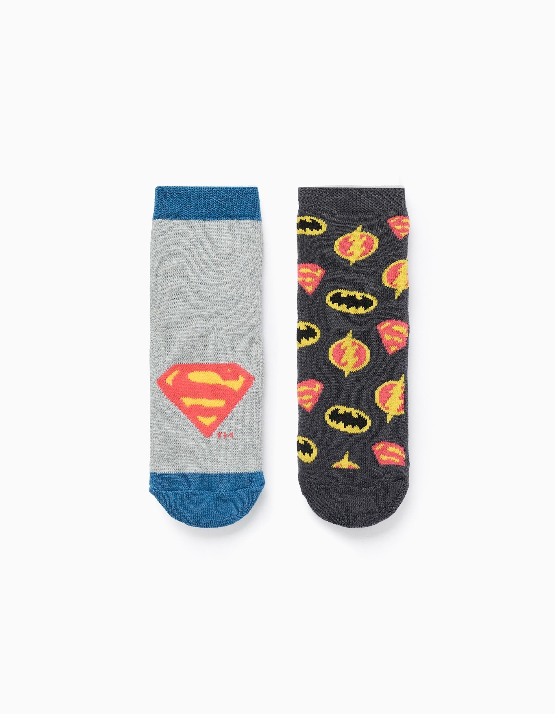 Pack of 2 Non-Slip Socks for Boys 'Superman', Grey