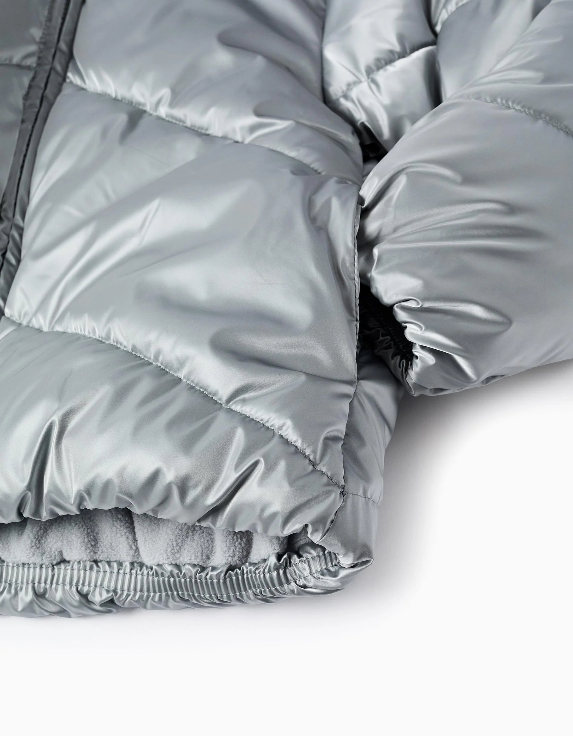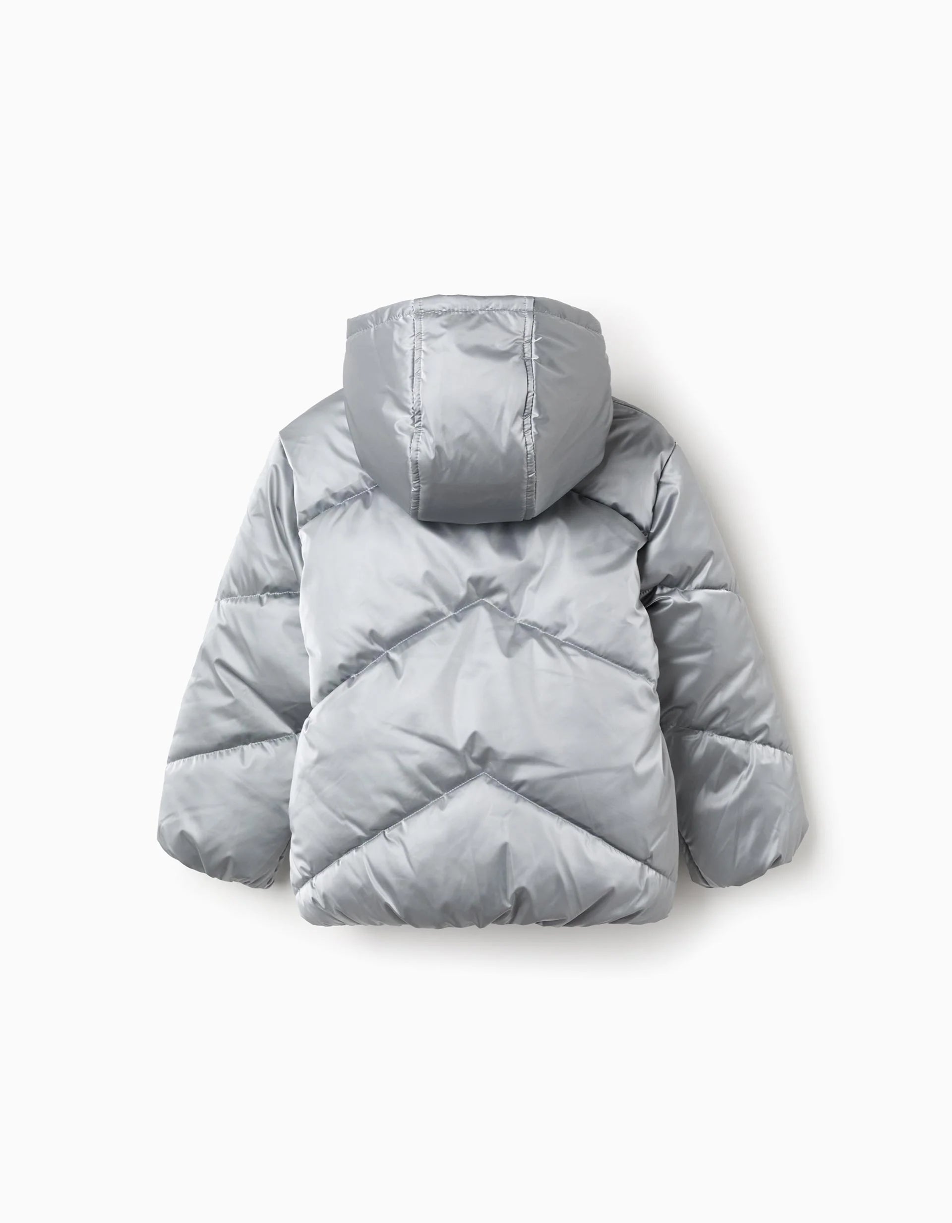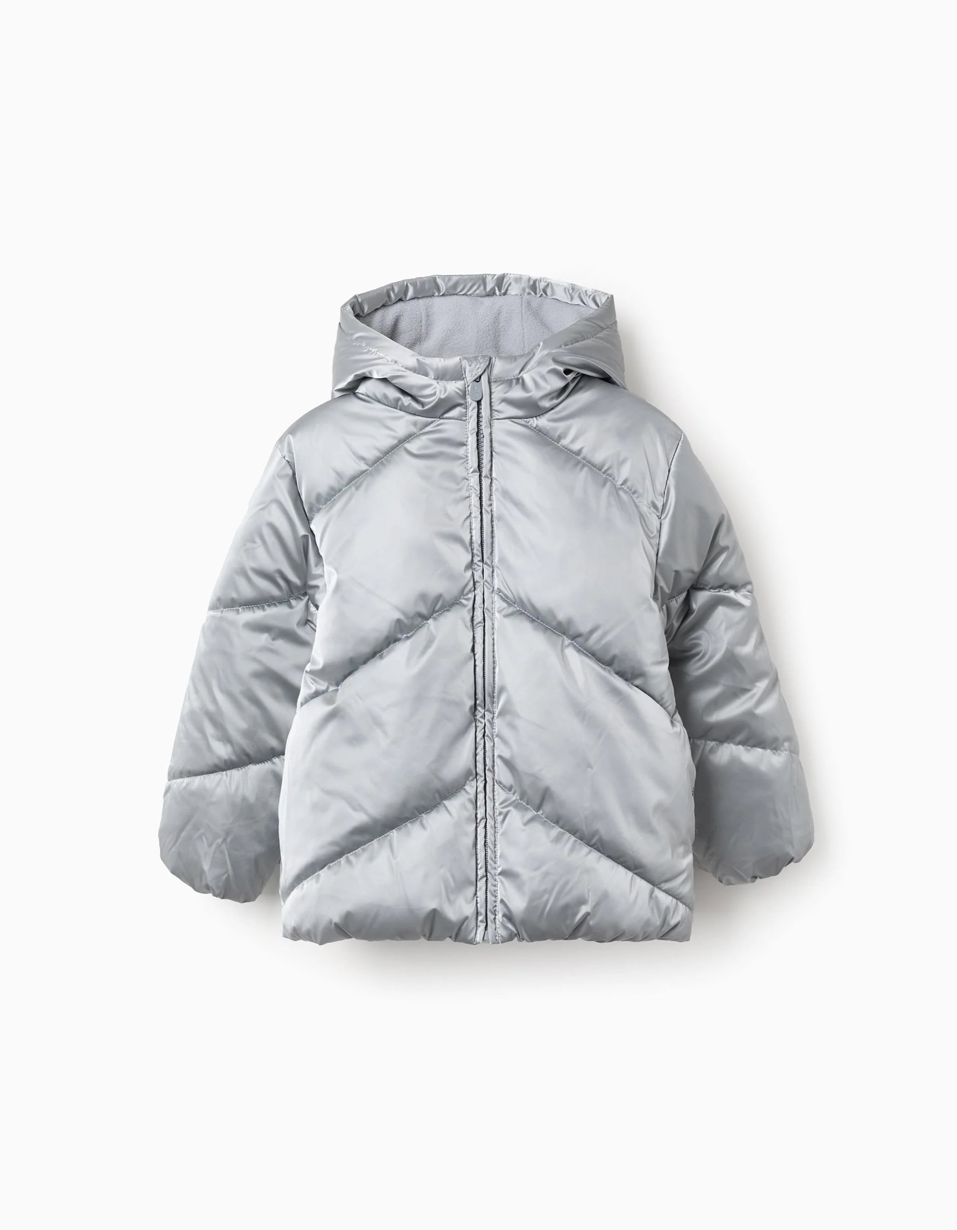 Padded Jacket with Fleece Lining and Hood for Girls, Silver