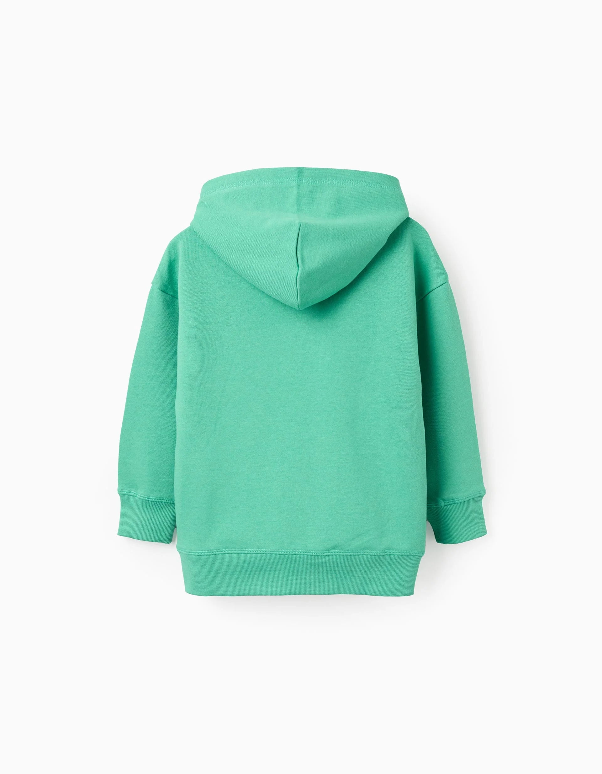 Green sweatshirt with hood for boys, 100% cotton. Fun front print inspired by the Bauhaus movement. Drop shoulders for a more relaxed fit. Side pockets. Ribbed edges for a perfect fit. For looks with colour and originality!