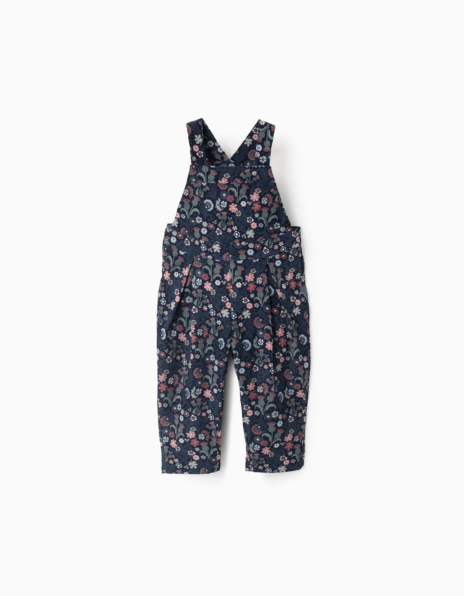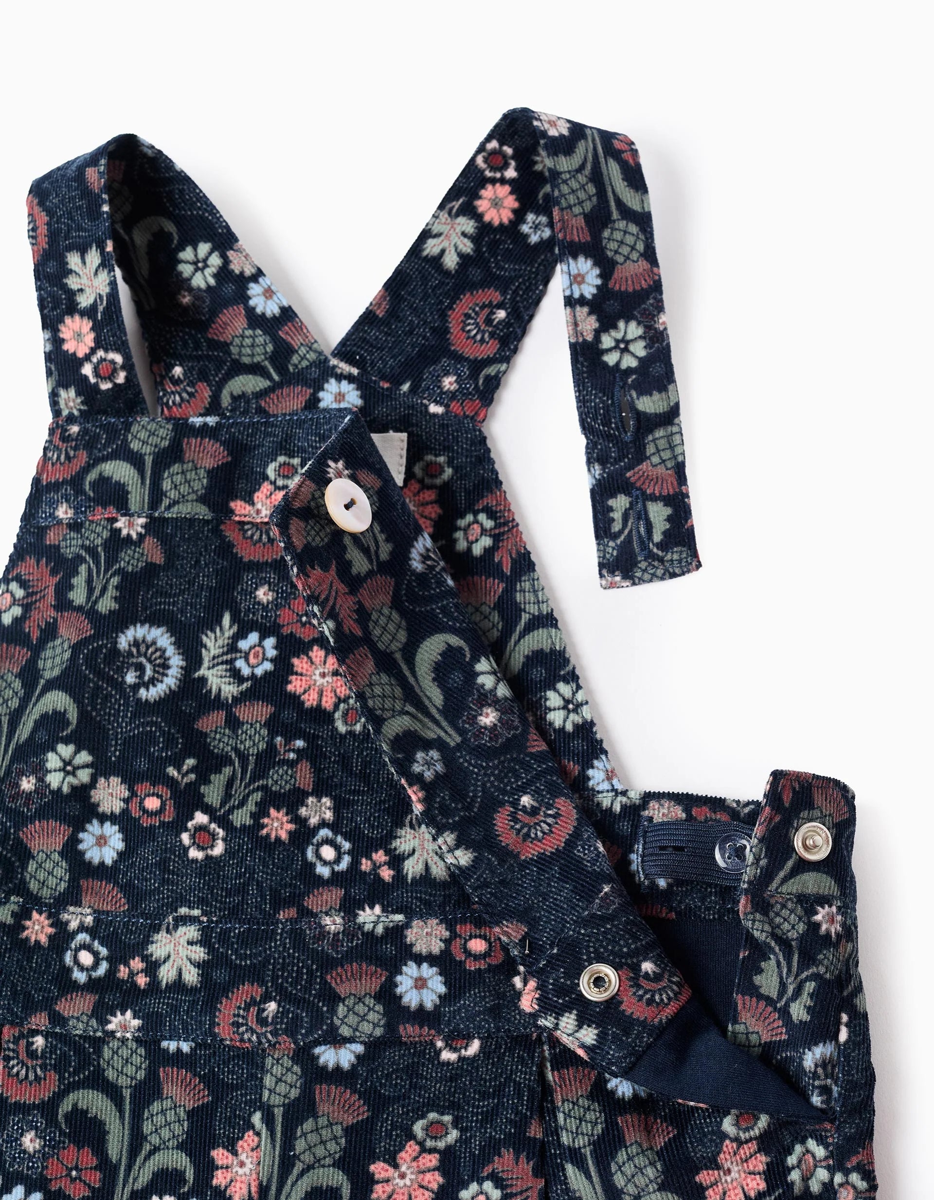 Floral Corduroy Dungarees for Baby Girls, Dark Blue