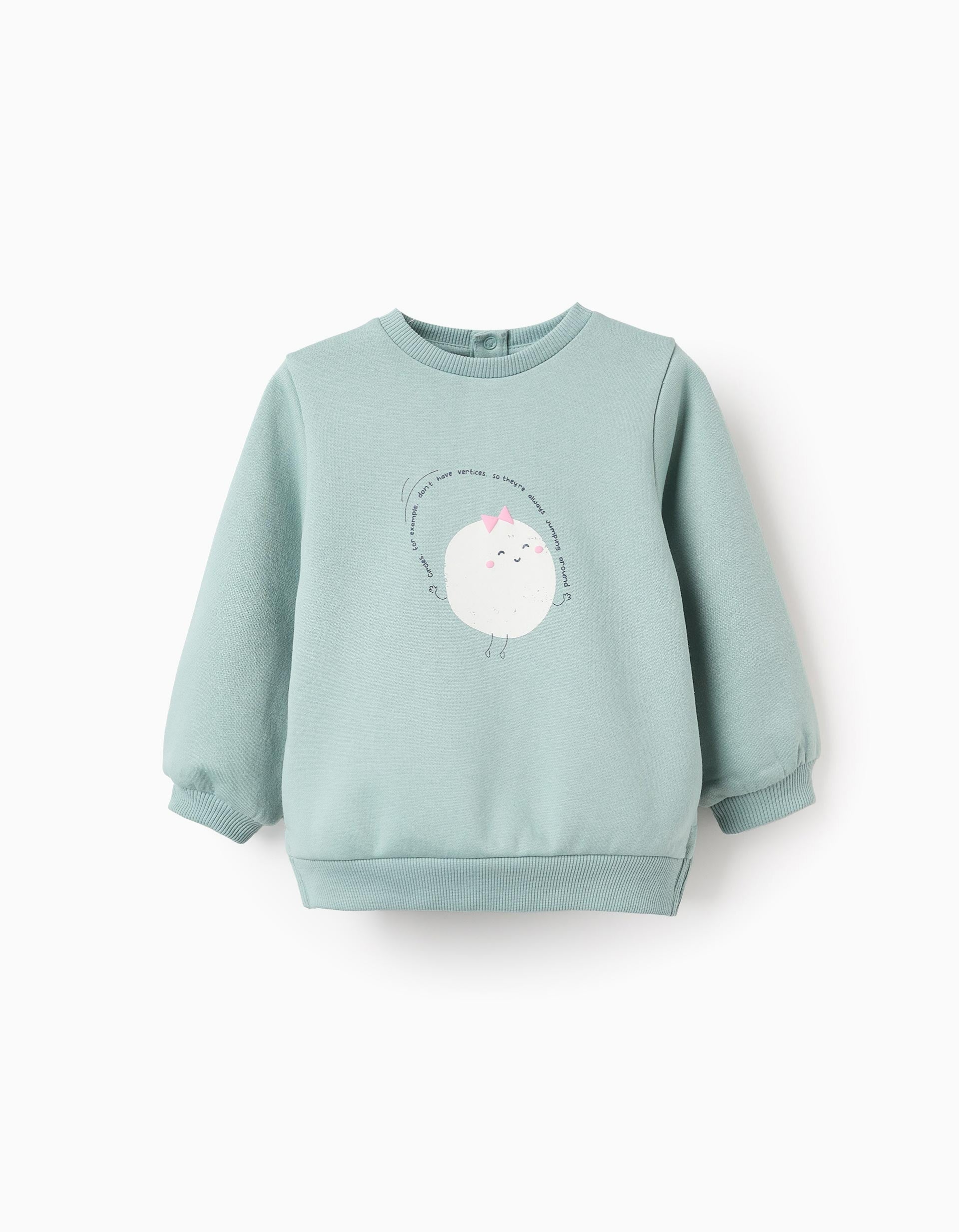 Brushed Sweatshirt with Print for Baby Girls 'Circle', Aqua Green