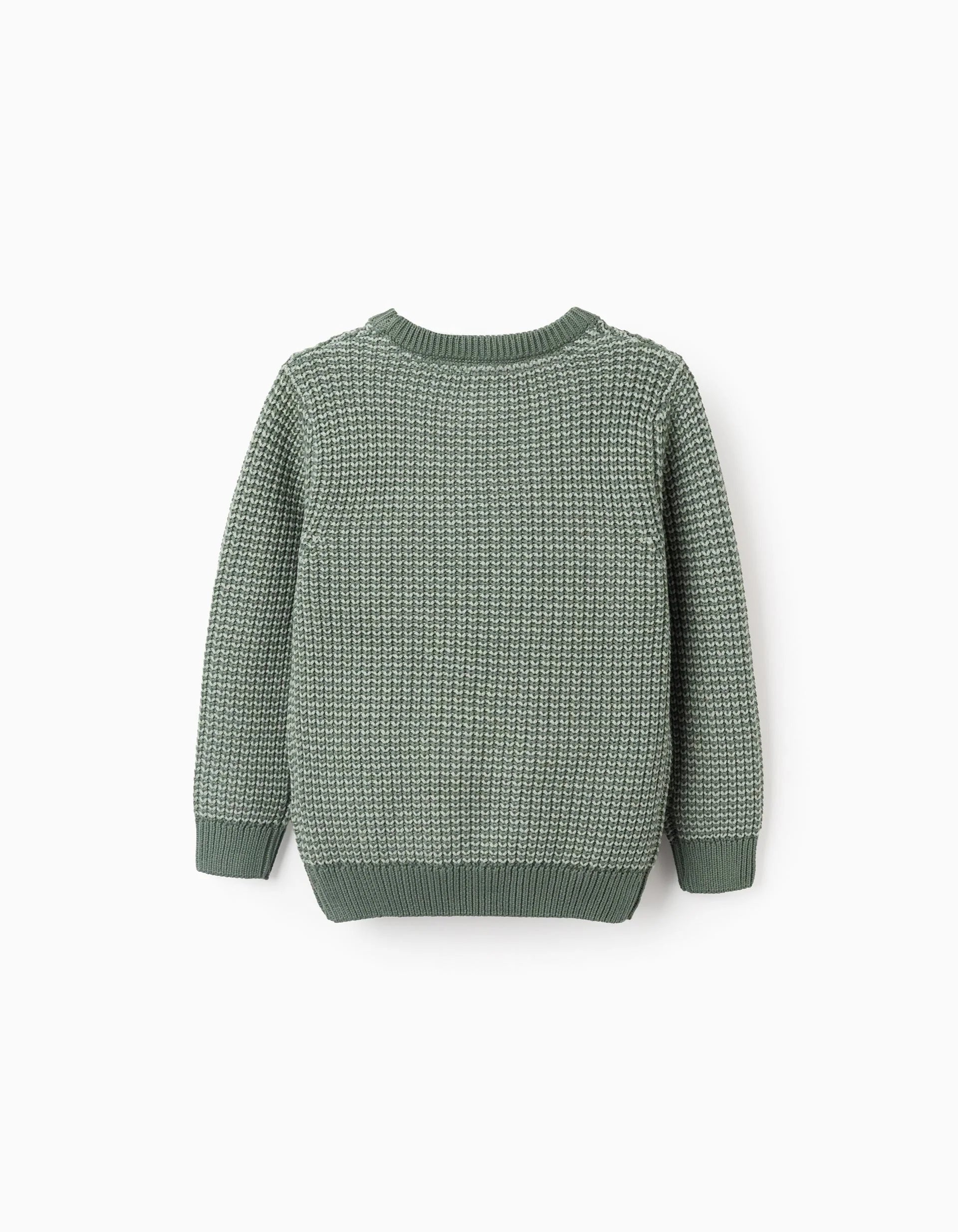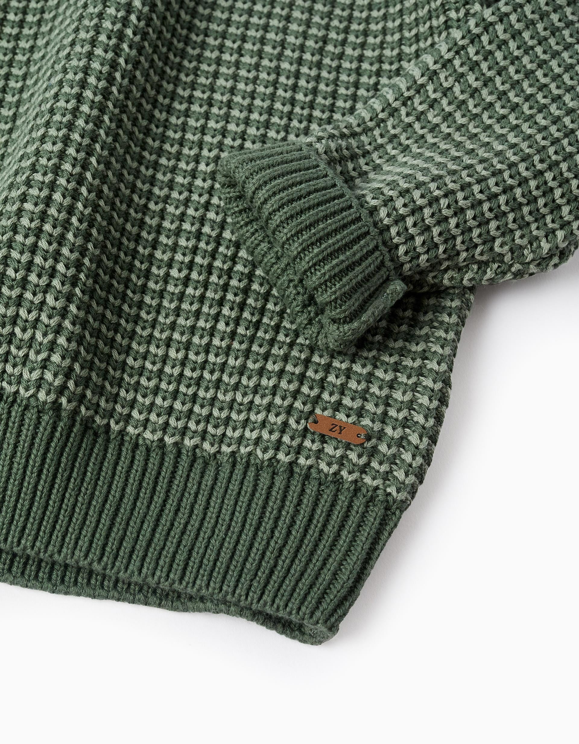 Two-Tone Cotton Knitted Jumper for Boys, Green