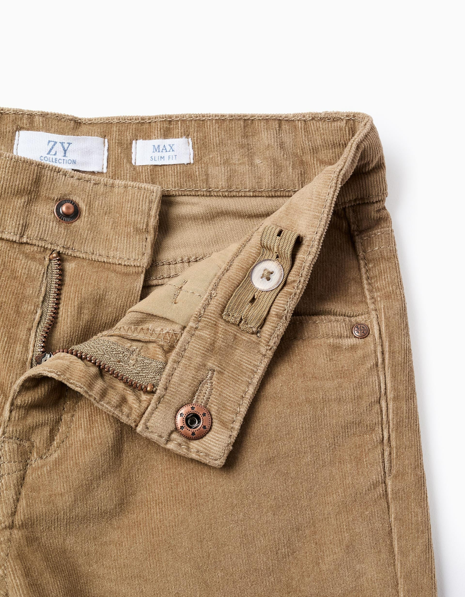 Corduroy Trousers 'Slim Fit' for Boys, Dark Beige