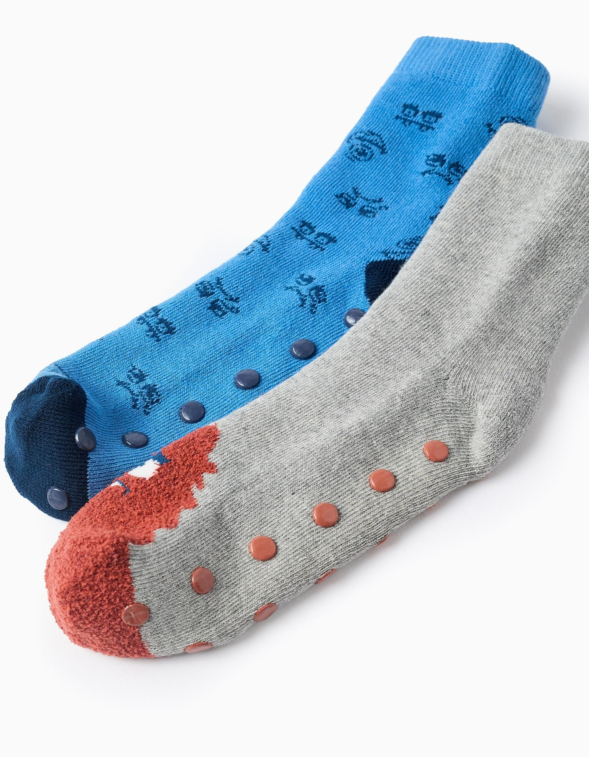 Pack 2 Pairs of Non-slip Socks for Boys 'Monsters', Blue/Grey