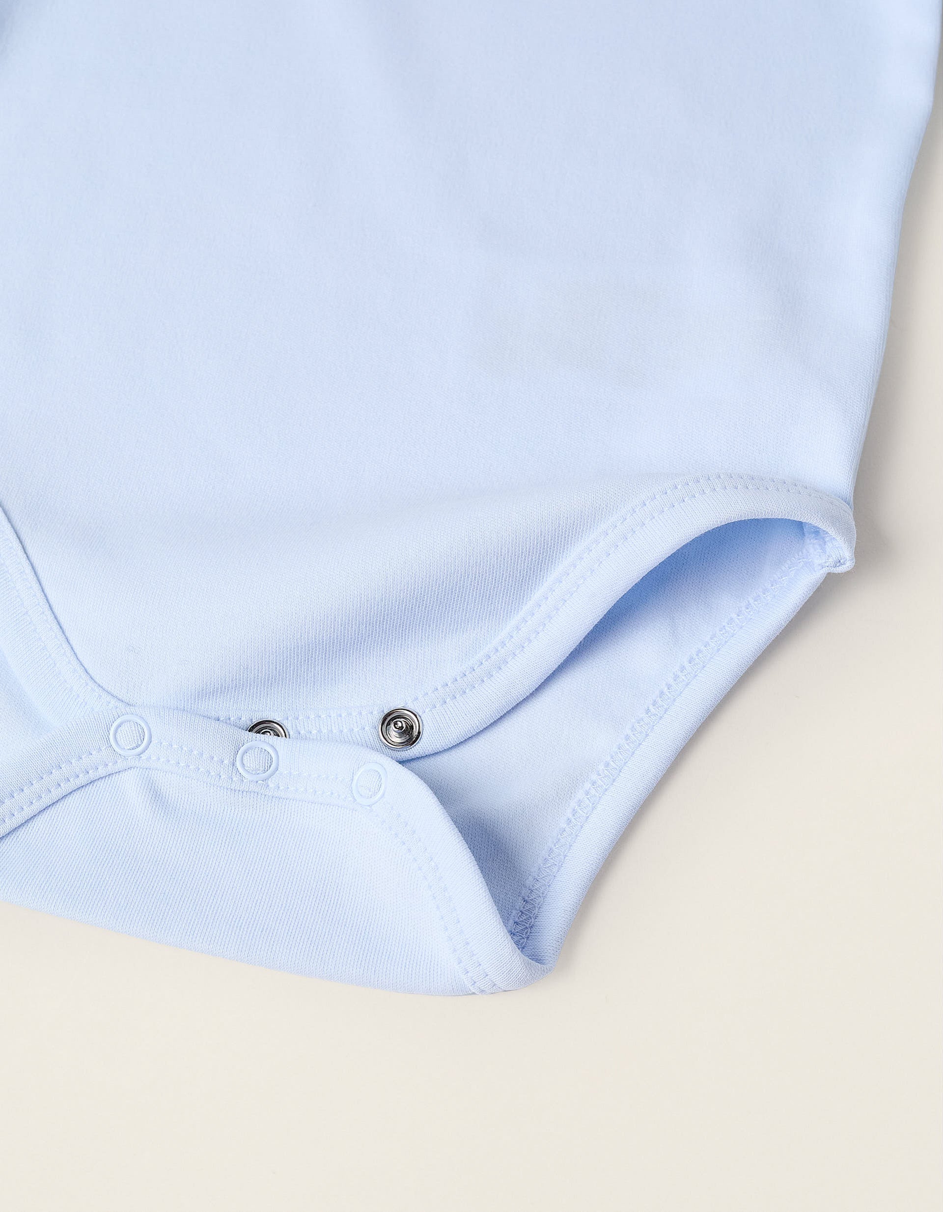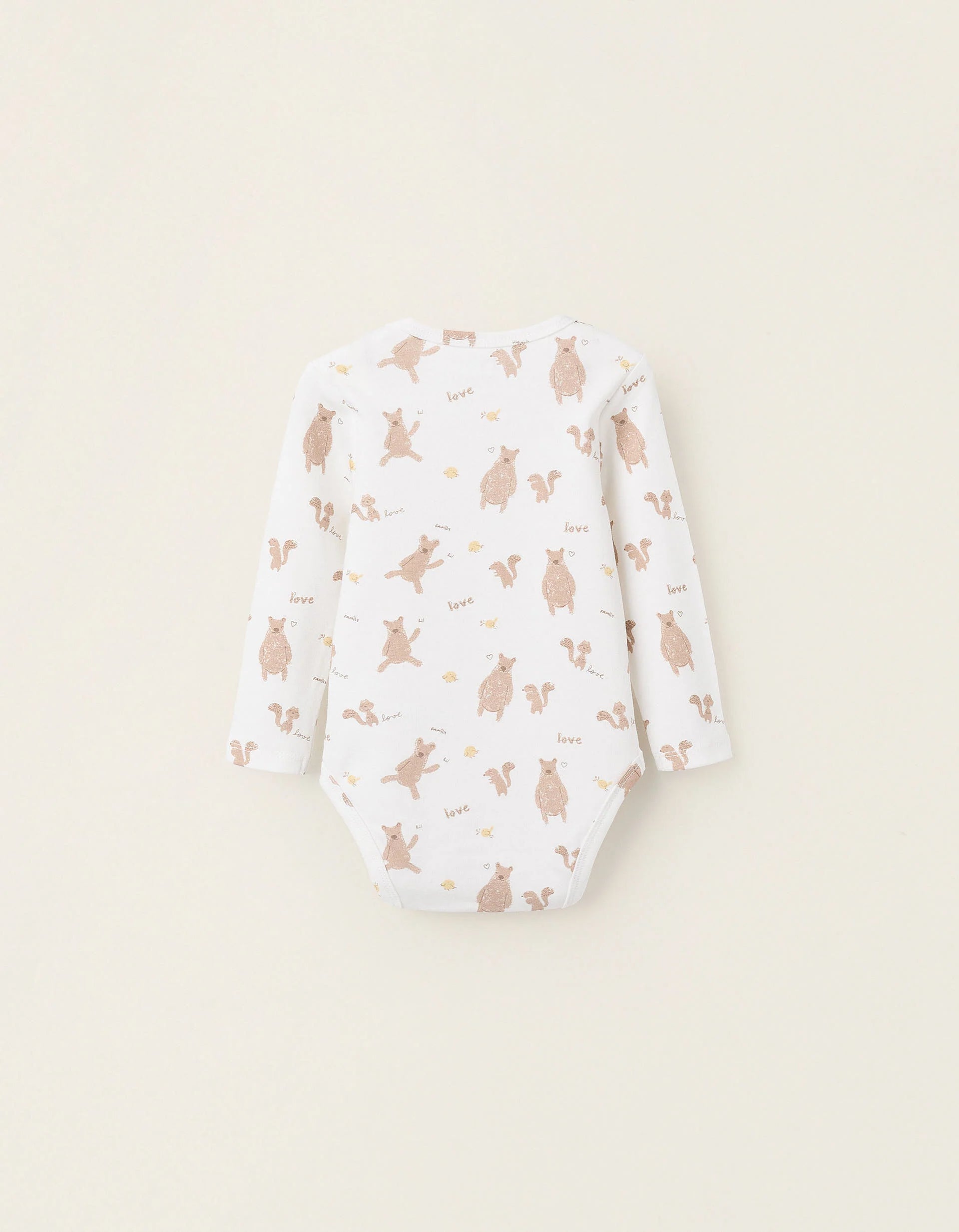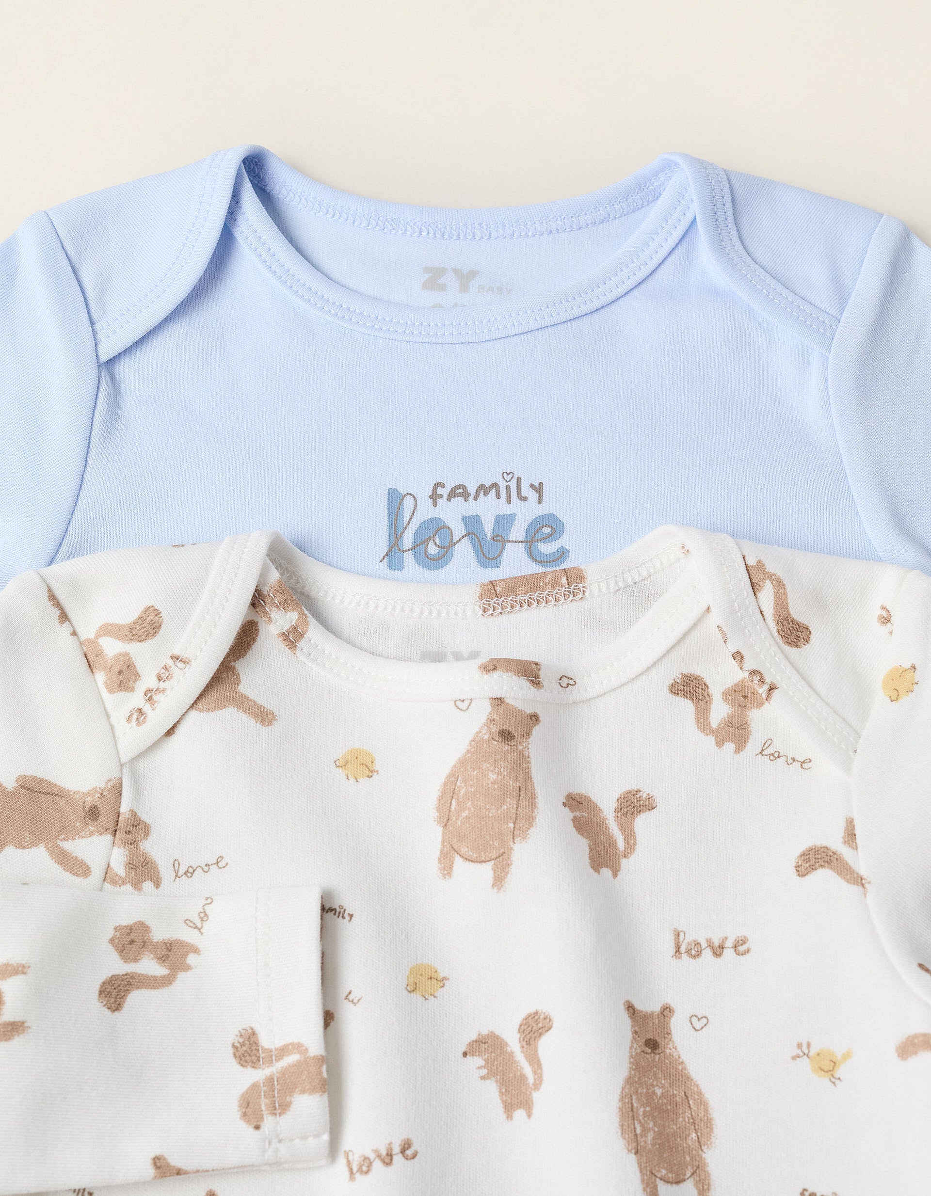 Pack of two bodysuits for baby boys, 100% cotton. Includes a blue bodysuit with a print on the front and a white one with a motif of bears, squirrels and birds. Crossed shoulders for easy dressing. Printed inner labels to avoid skin irritation. A set of soft and comfortable underwear, ideal for everyday wear!