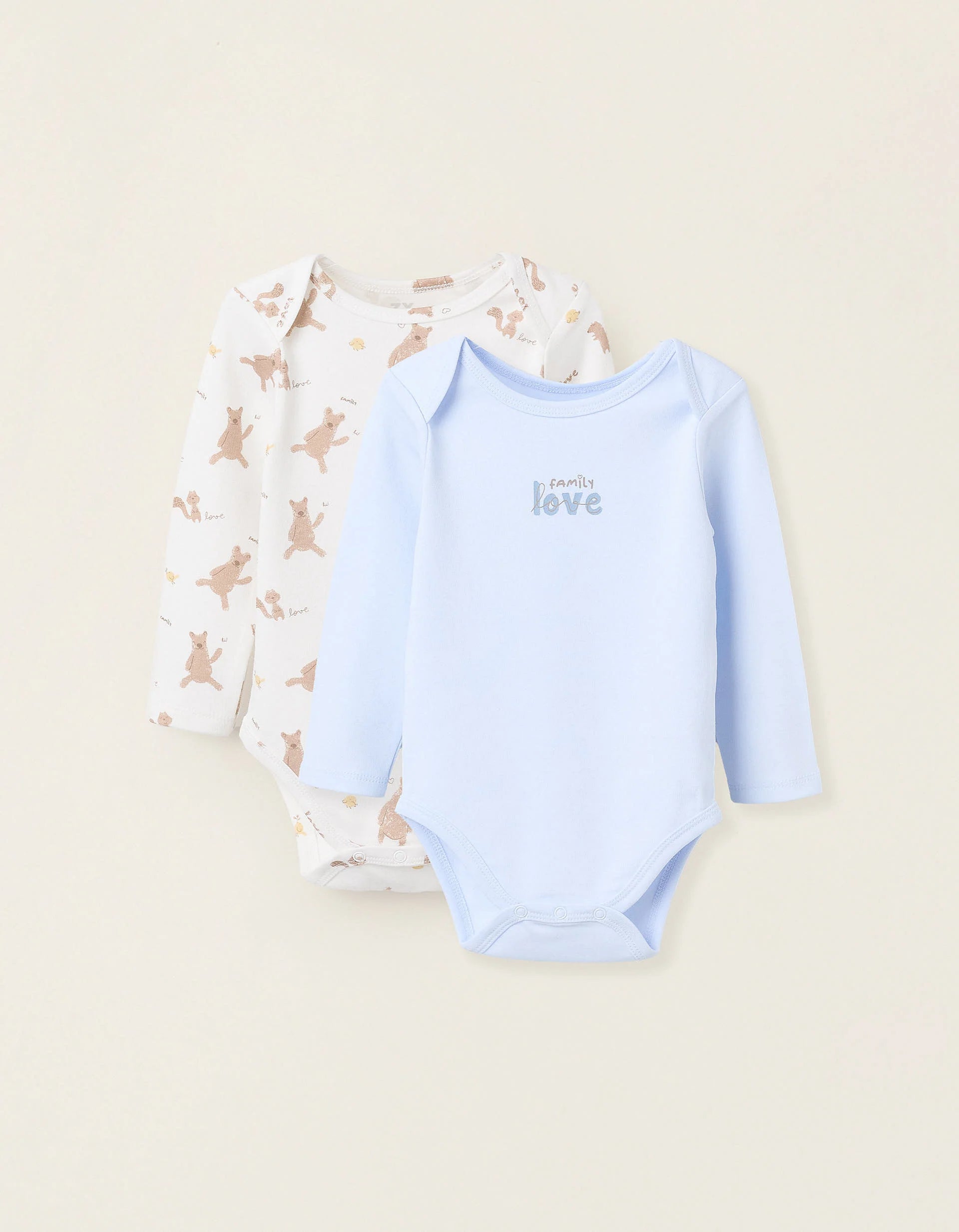 Pack of 2 Cotton Bodysuits for Baby Boys 'Family Love', Blue/White