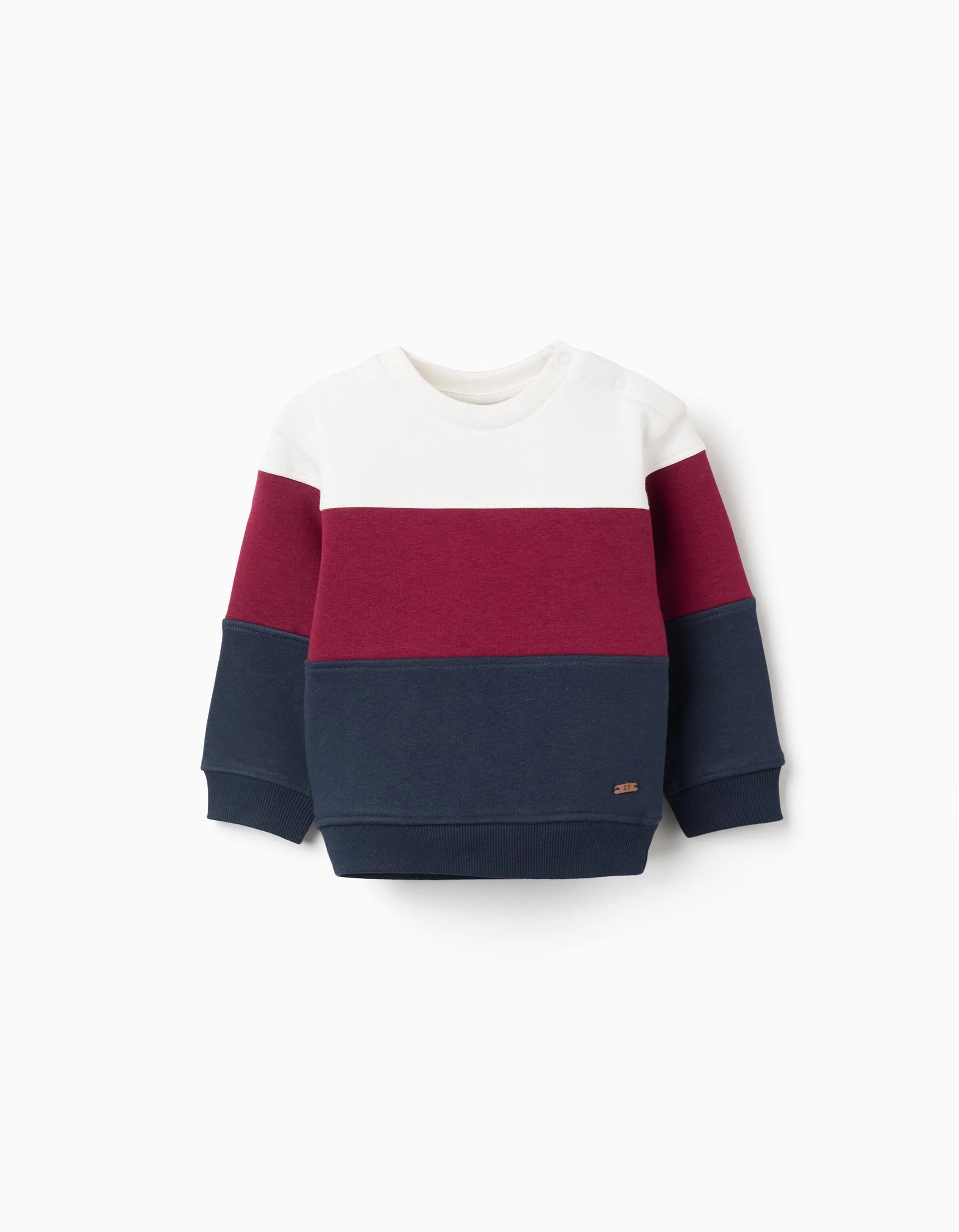 Brushed Sweatshirt with Colour Block for Baby Boys, White/Red/Blue