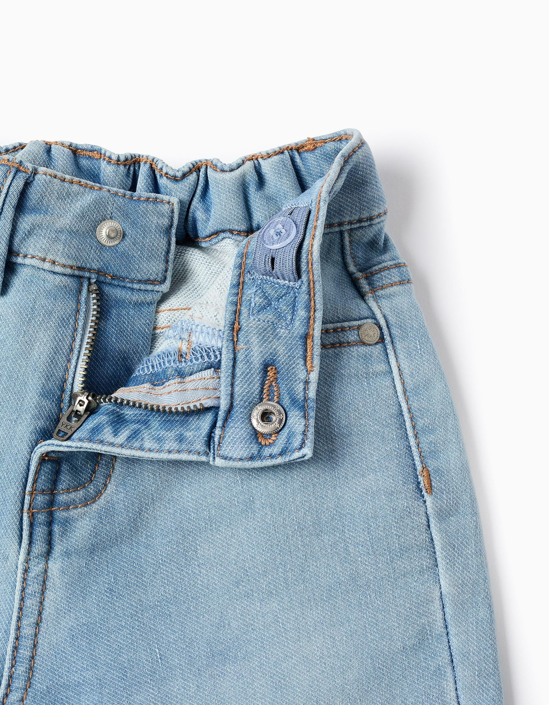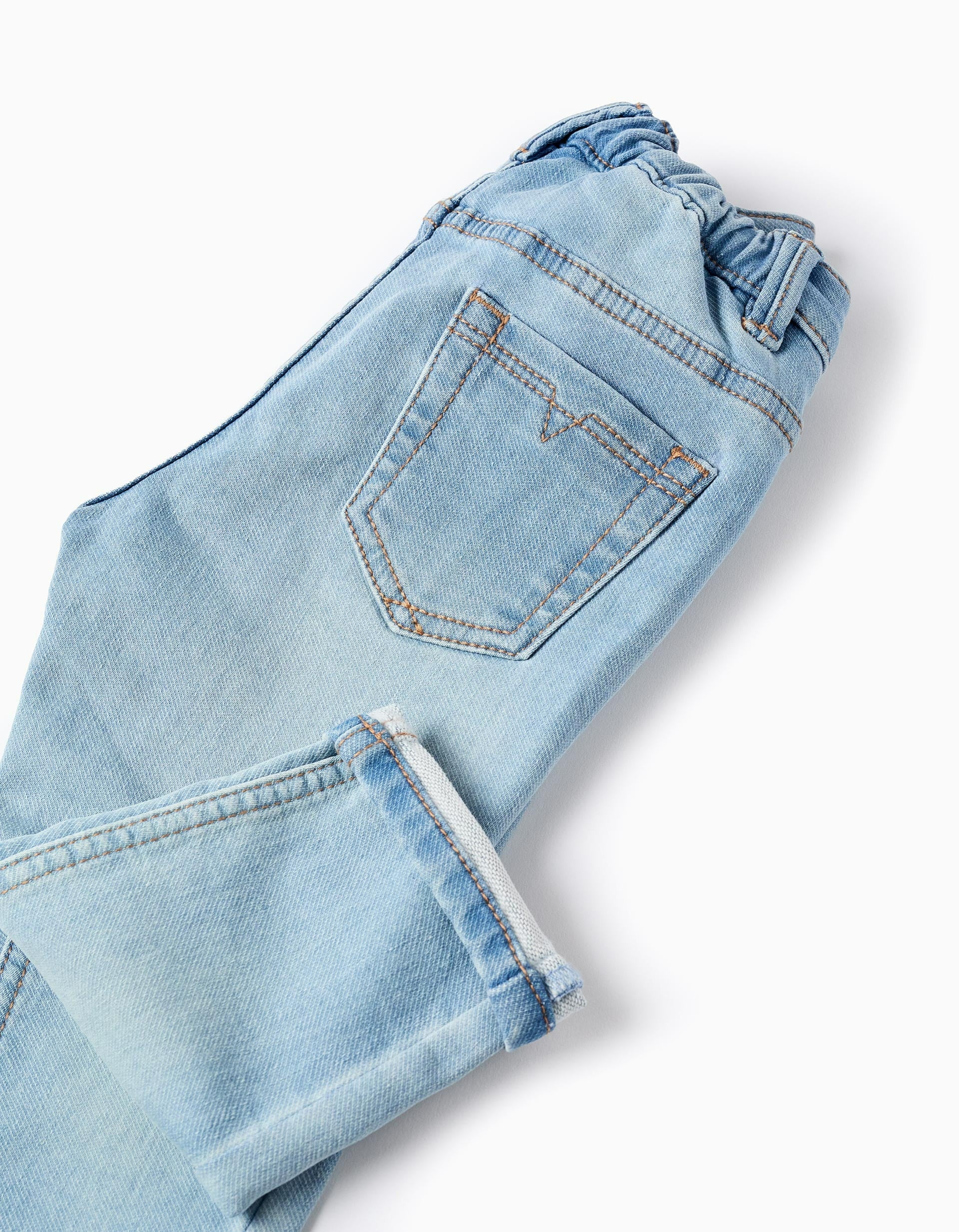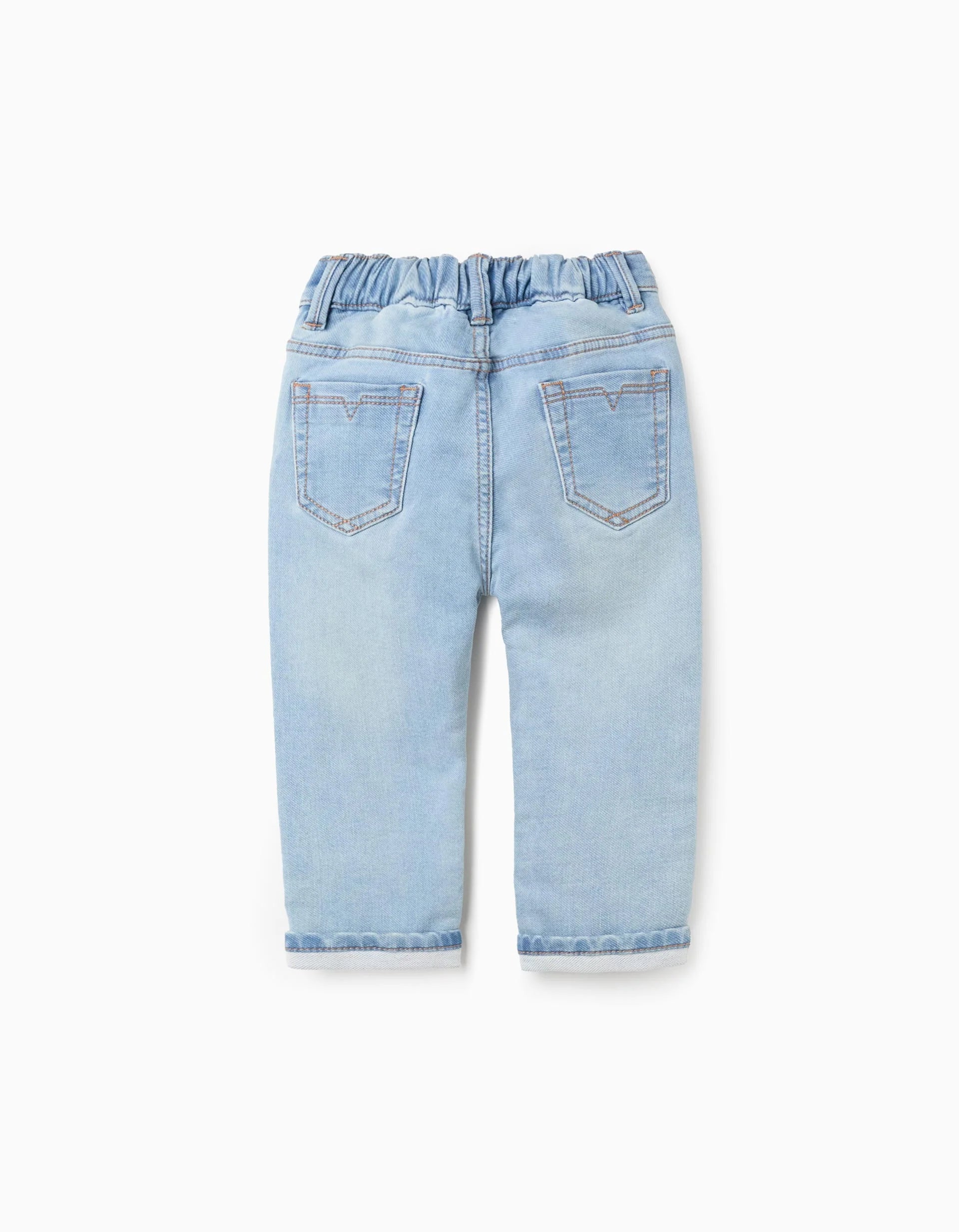These light blue denim trousers are the perfect choice to provide everyday comfort to baby boys. Made from a soft and breathable fabric, these jeans ensure that your baby boy feels at ease while exploring the world around him. With a practical design, they are ideal for daily adventures, whether on a family outing or playing in the park. Perfect for any season, these jeans are versatile and easy to pair with shirts, sweatshirts and jumpers, ensuring your little boy is always comfortable and warm.
