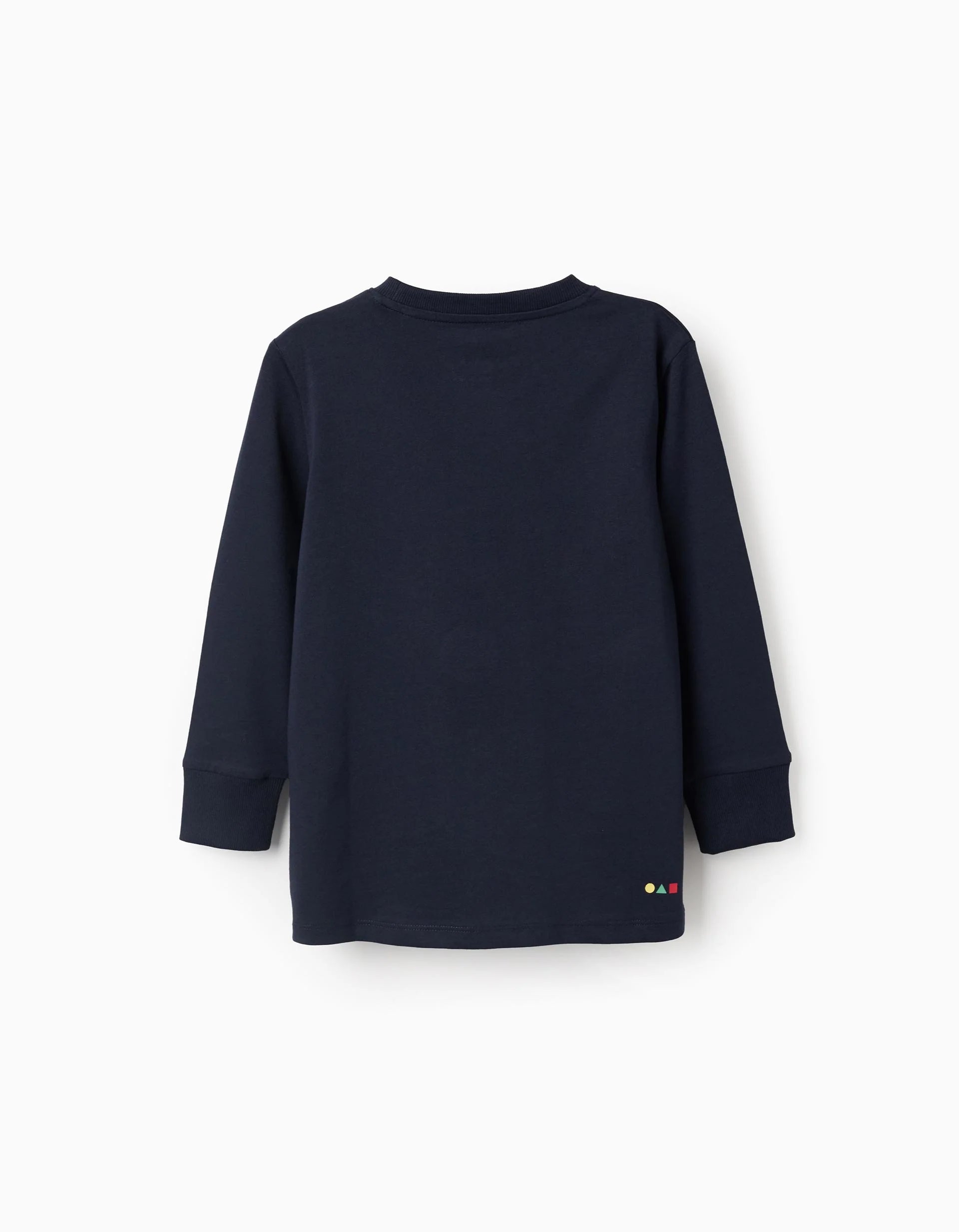 Long Sleeve Cotton T-shirt for Boys 'Dot', Dark Blue
