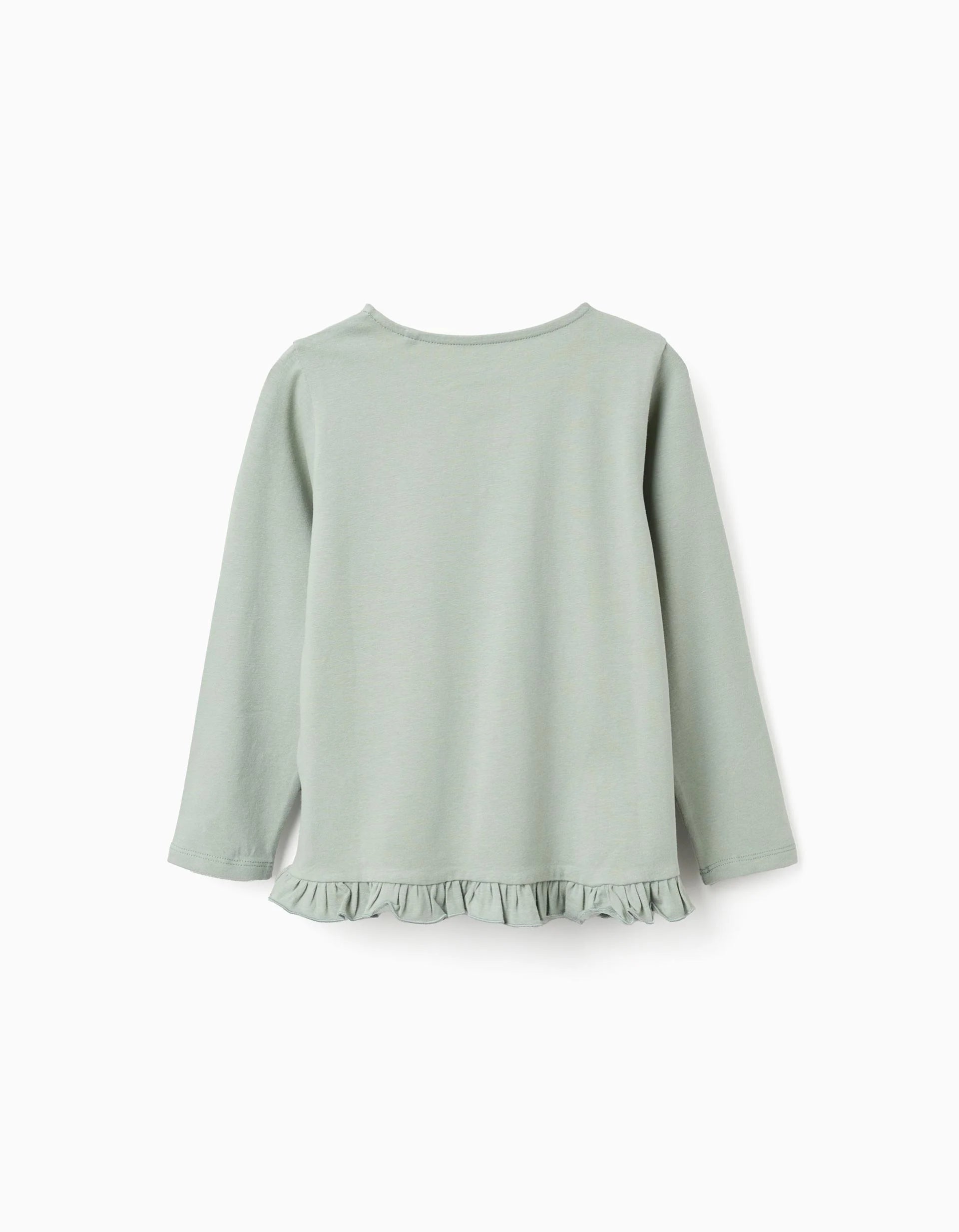 Long Sleeve T-shirt with Flower Print and Ruffles for Girls, Green