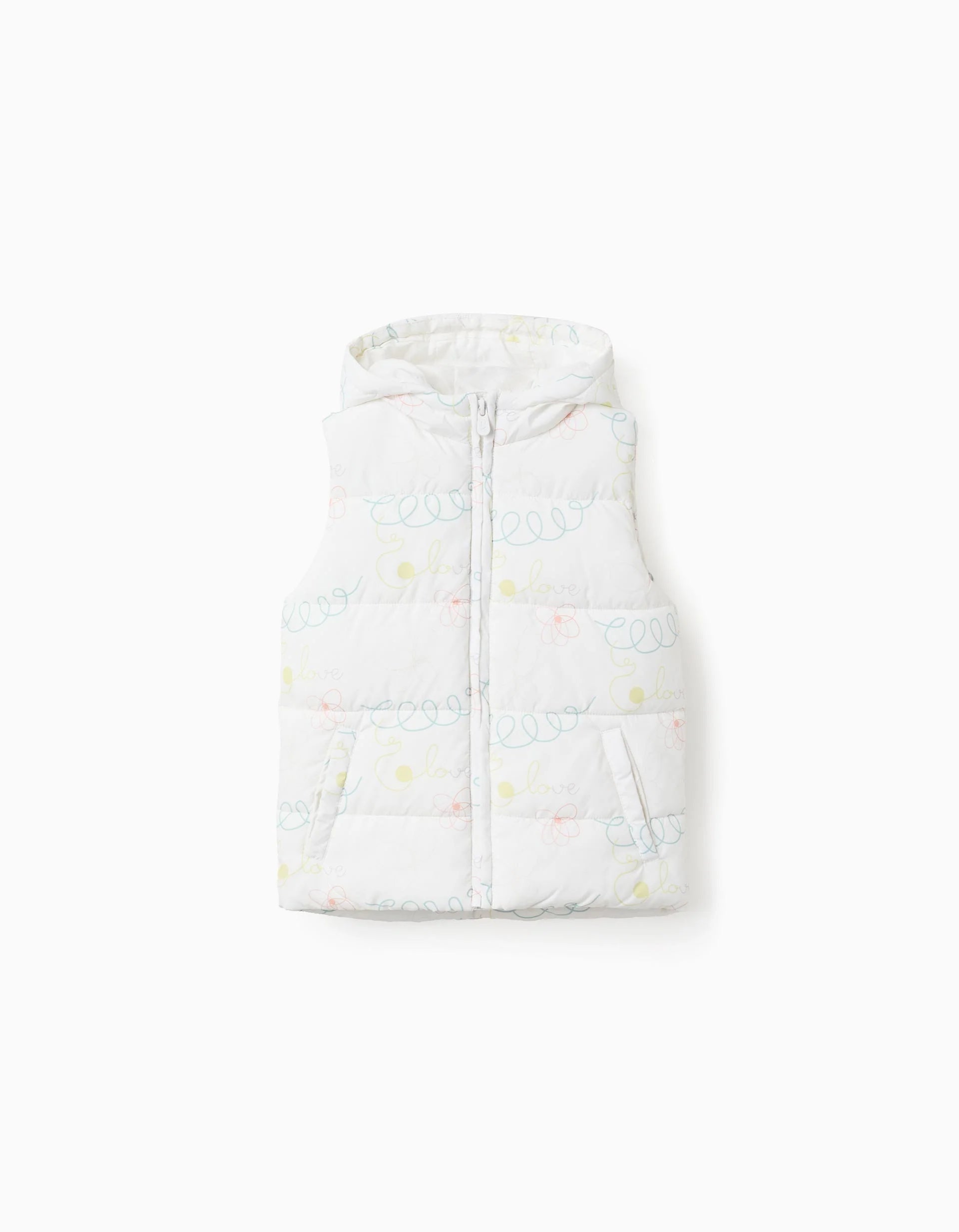 Padded Vest with Hood and Motif for Girls 'Love', White