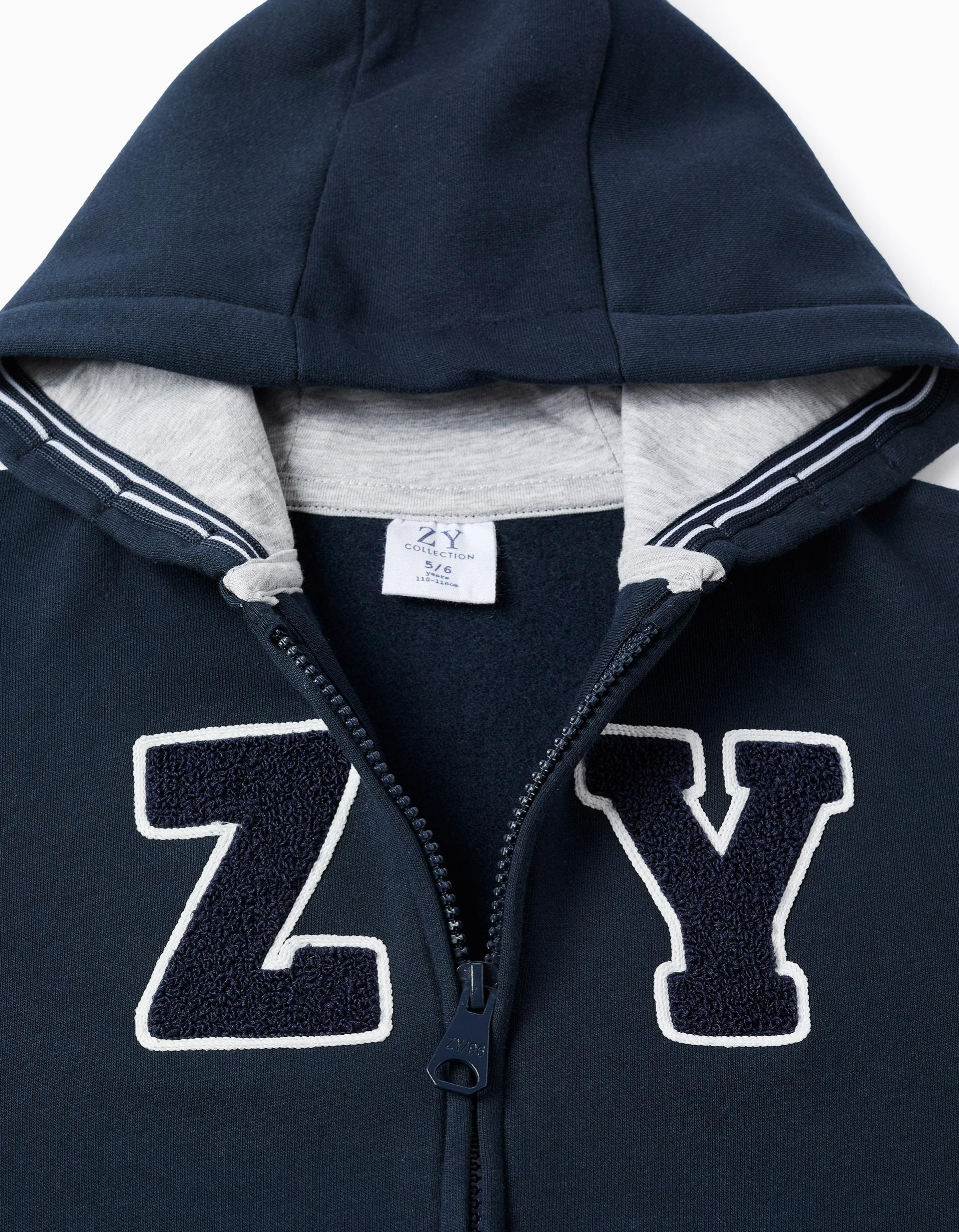 Brushed Hooded Jacket 'ZY' for Boys, Dark Blue/Grey
