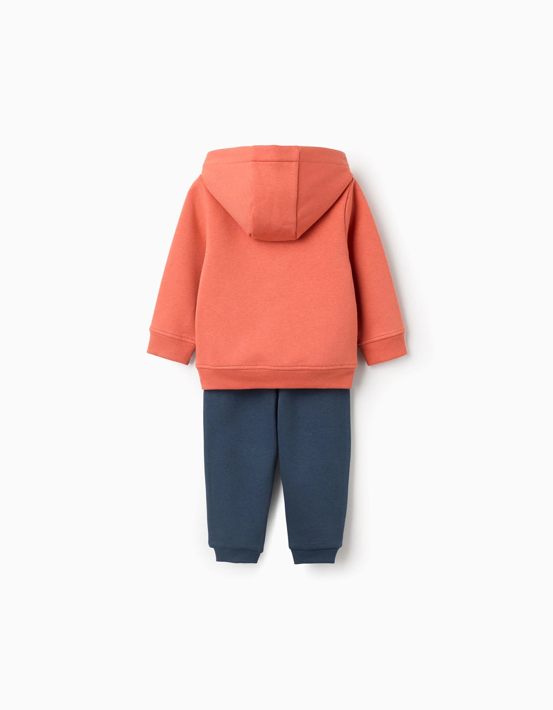 This three-piece tracksuit set is the perfect choice to keep your baby boy comfortable and warm on any occasion. It includes an orange hooded jacket, ideal for cooler days, providing warmth and cosiness. The white long-sleeve t-shirt features a joyful print of a fox that will surely delight your little one. It also includes a pair of dark blue joggers that offer freedom of movement. This set is ideal for Autumn and Winter, for school activities or for playing at the park, ensuring your baby is comfortable all day long.
