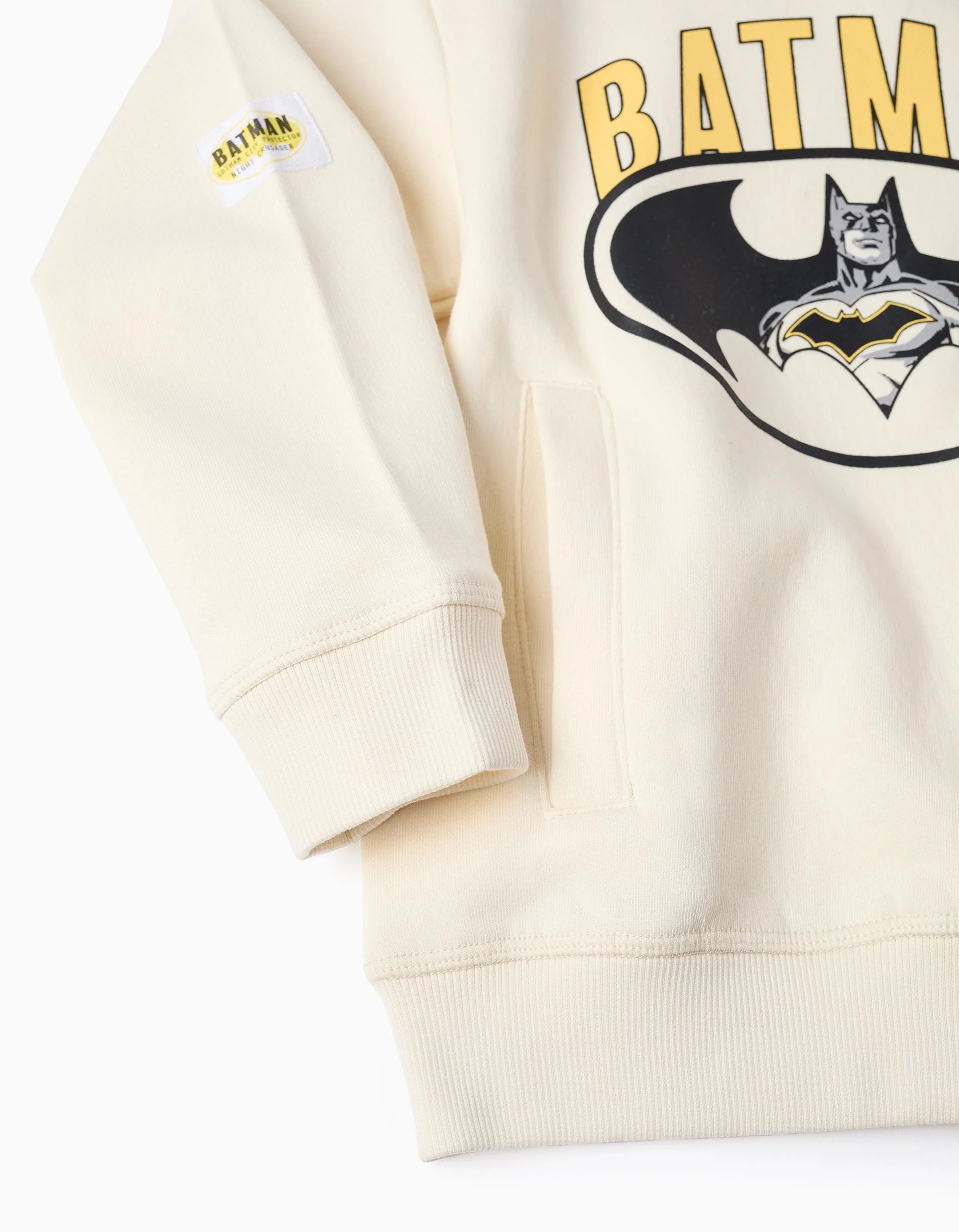 Discover the WB sweatshirt, an essential piece for little ones who love comfort and freedom of movement. Made from a cotton blend, this sweatshirt features a brushed lining that provides unparalleled softness and thermal comfort. The highlight of the piece is the vibrant Batman print on the front and sleeve, perfect for superhero fans. With a design intended for mid-season and winter, the long sleeves and ribbed collar ensure your child stays warm and stylish throughout the day. Perfect for daily adventures, whether at home, school, or outdoors, it's a choice that combines comfort and fun.