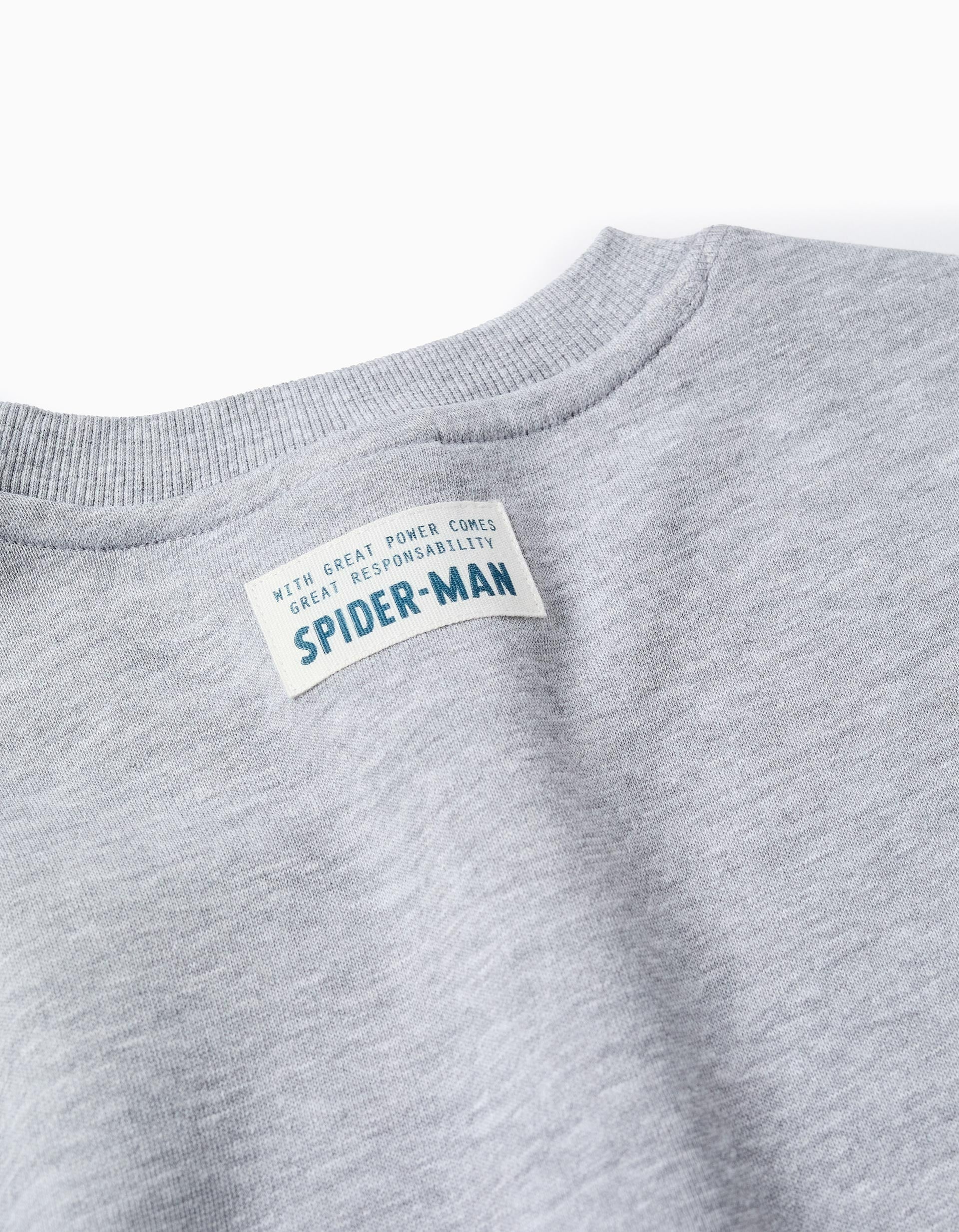 Grey sweatshirt with Spider-Man print for boys. Brushed interior for greater thermal comfort. Ribbed edges for a perfect fit. Practical and cosy.