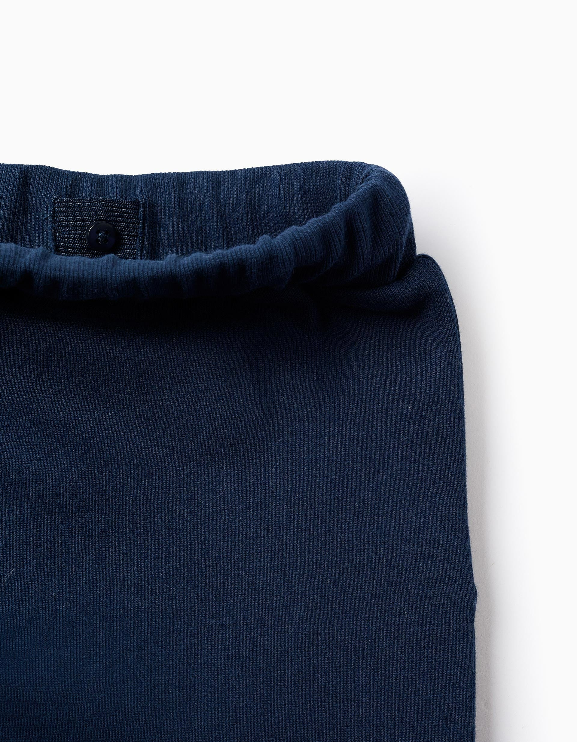 Dark blue joggers for boys, 100% cotton, with Spiderman details. Brushed interior for greater thermal comfort. Ribbed waist with drawstring, adjustable inside with elastics and buttons. Side pockets.