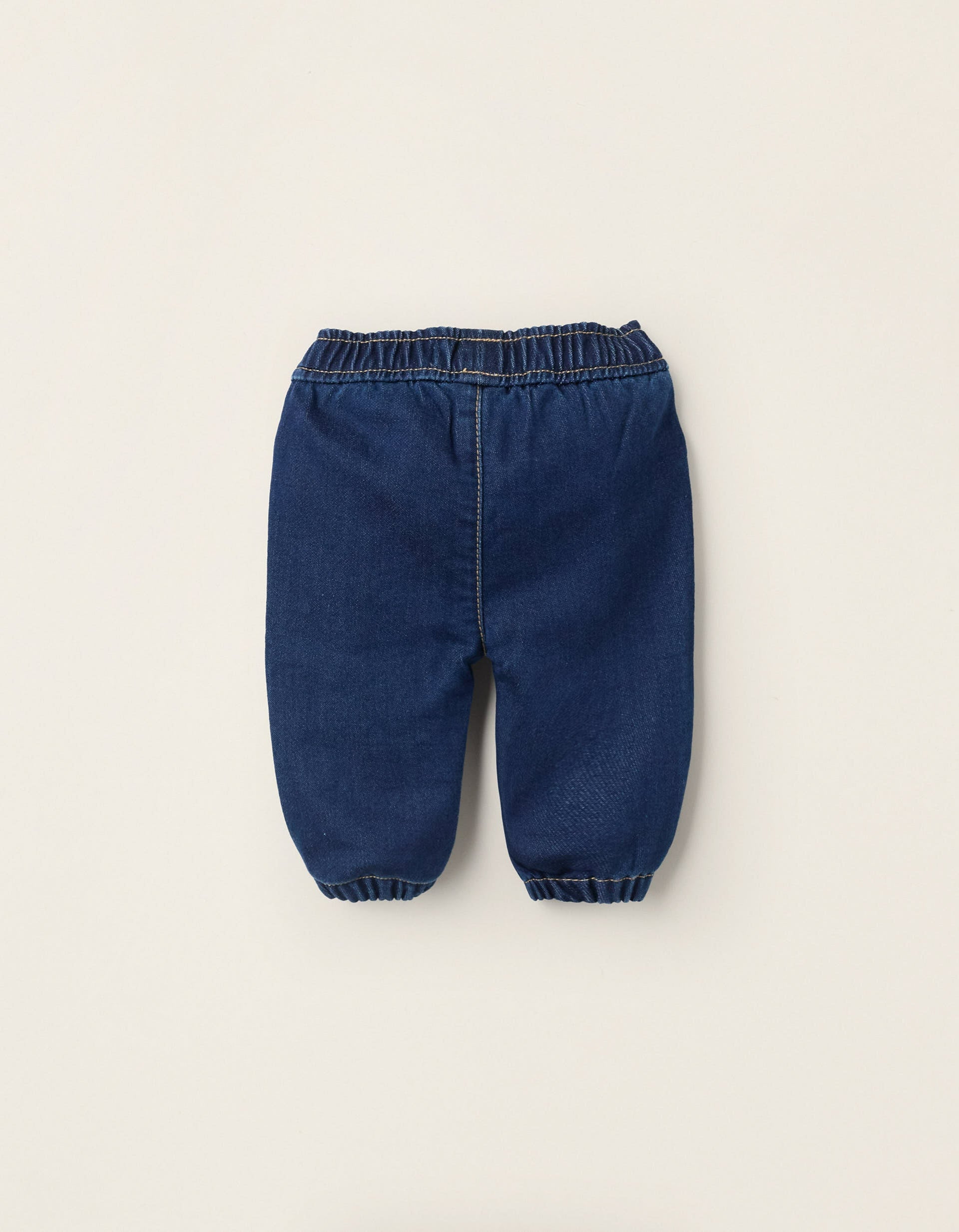 Denim Trousers with Ruffles at The Waist for Newborns, Blue