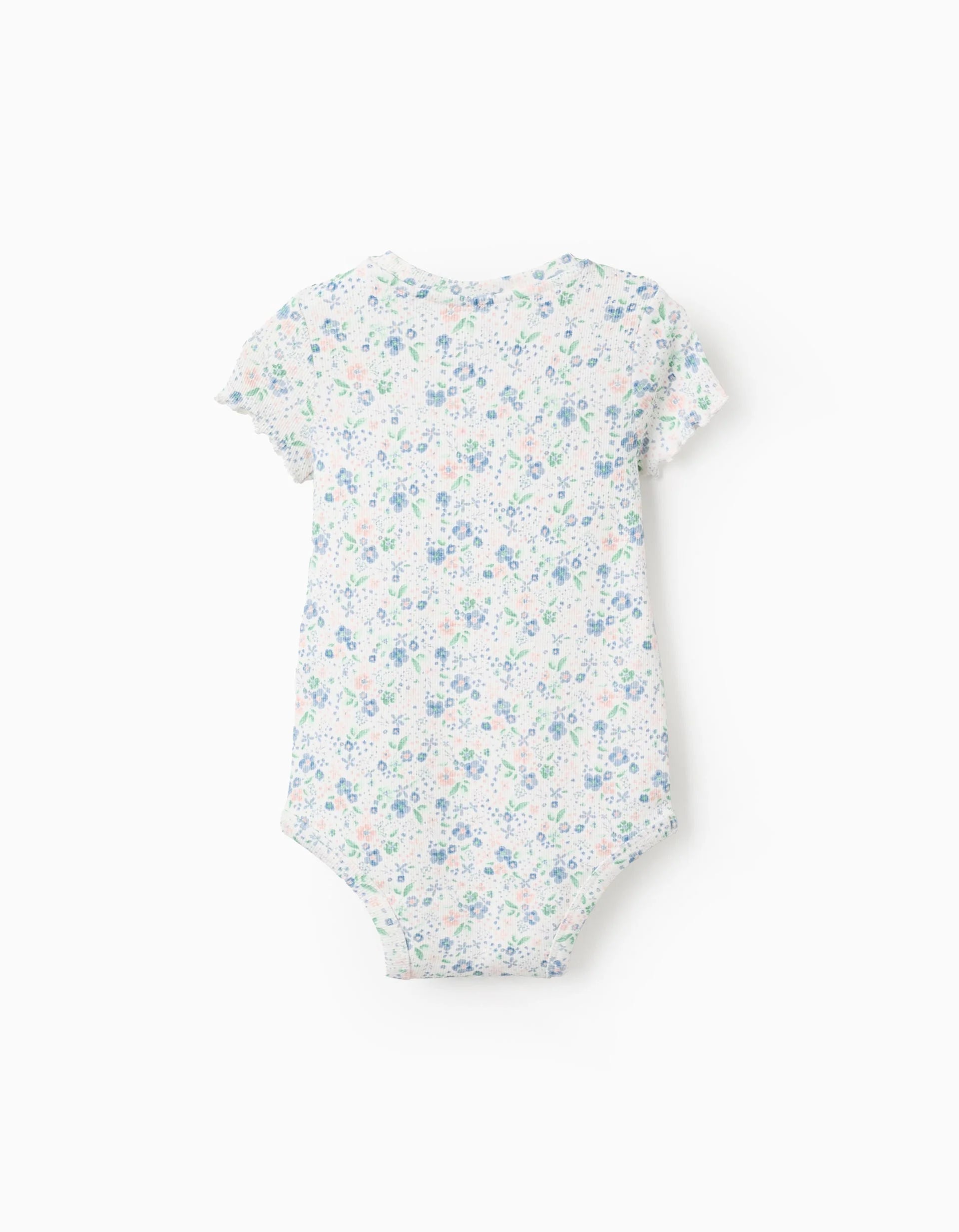 Ribbed Floral Bodysuit for Newborn Girls, White/Pink/Blue/Green