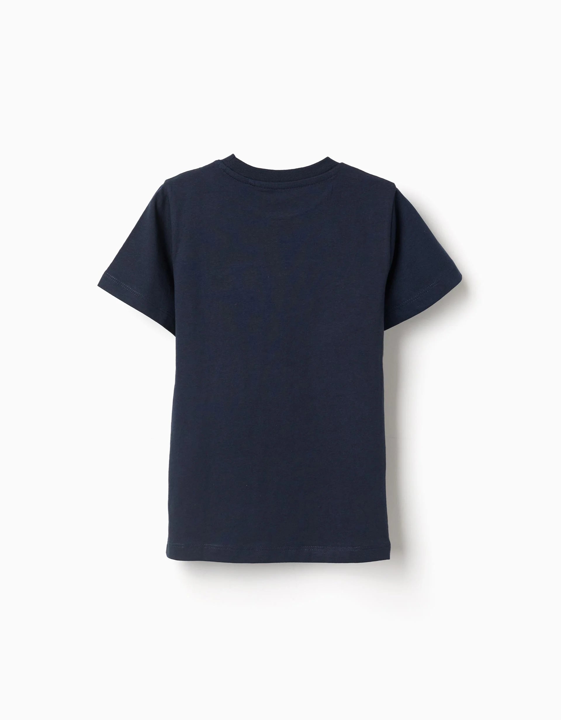 Cotton T-shirt with ZY Front Print for Boys, Dark Blue