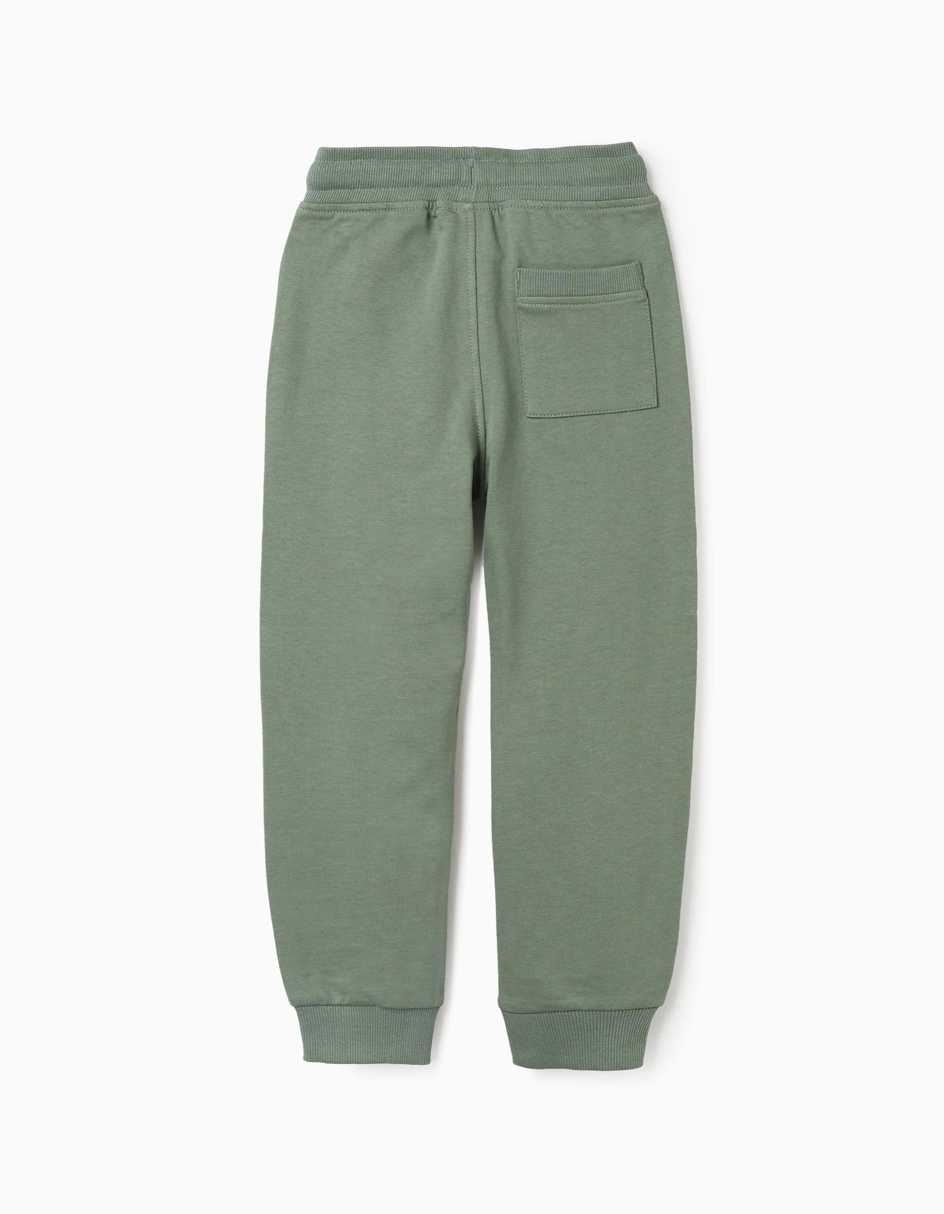 Green joggers for boys, in a soft and comfortable cotton blend. Slim fit. Sealed side pockets and open back pocket. Ribbed and flexible waist and hems, for maximum comfort. We Care: article with Oeko-Tex Standard 100 certification, which guarantees the absence of harmful or irritating substances to the skin.
