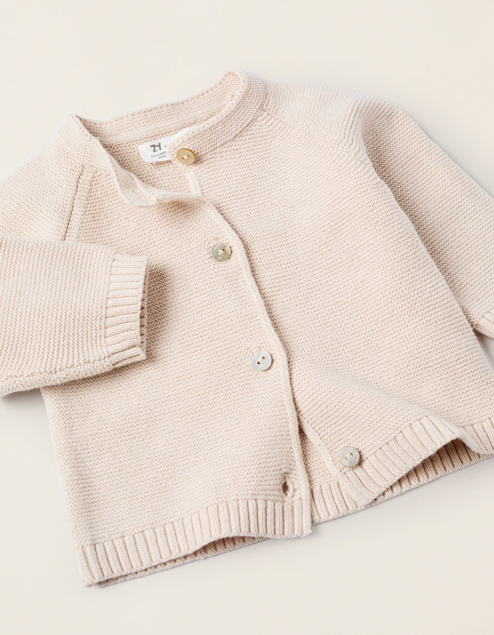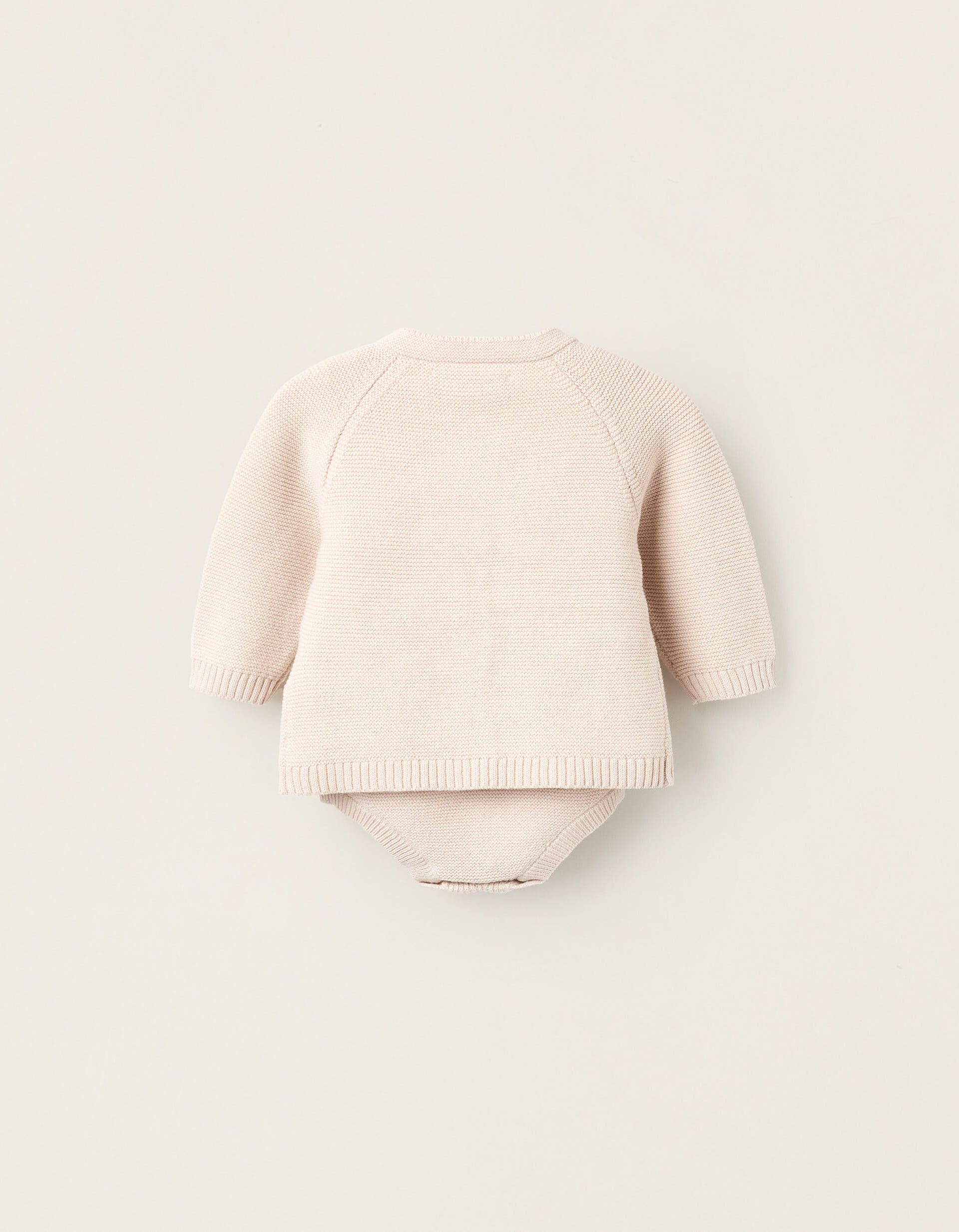 4-Piece Knitted Set in Cotton for Newborns, Beige