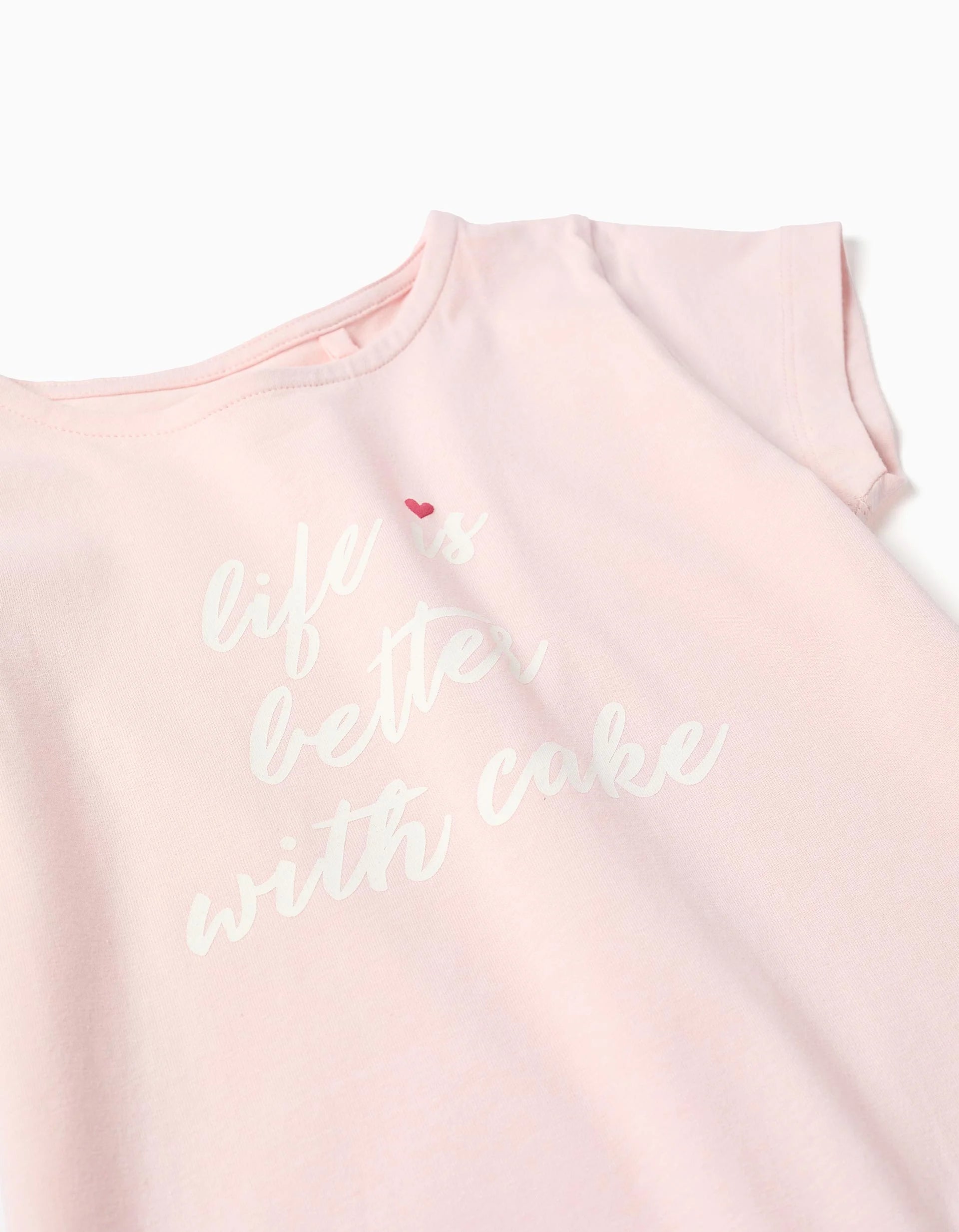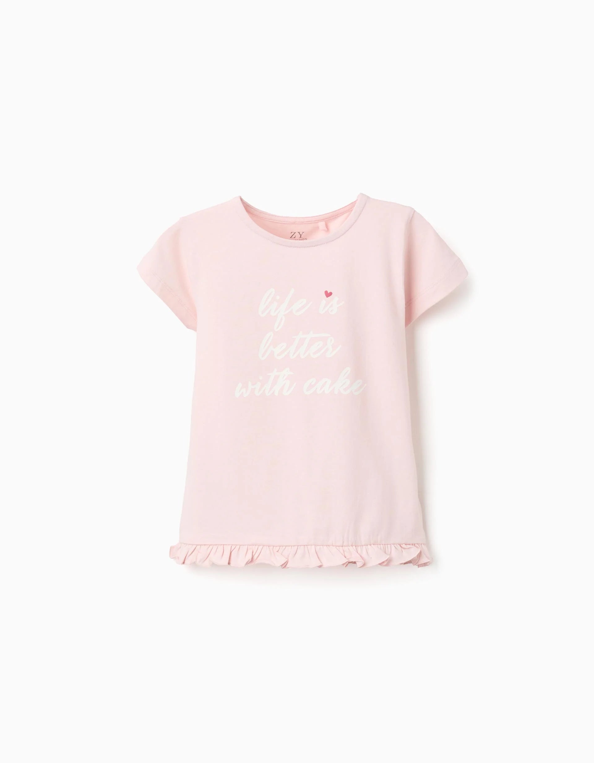 Light pink T-shirt for girls, made of cotton with a touch of elasticity for greater comfort and freedom of movement. Front print. Ruffles at the base. Printed inner label not to irritate the skin. A comfortable T-shirt, perfect for adding a cheerful touch to all outfits!